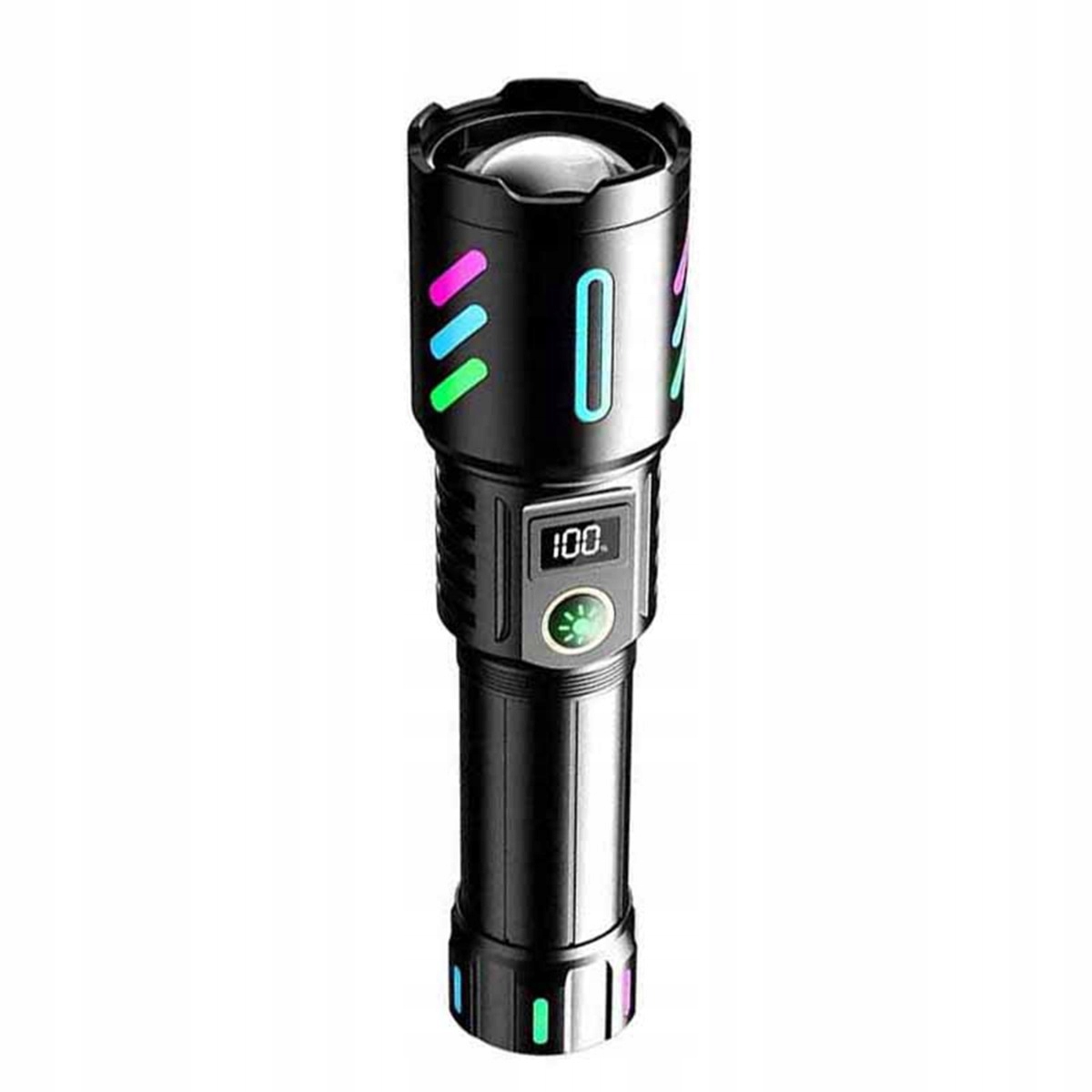 Умный цифровой дисплей: воспользуйтесь преимуществами мониторинга заряда батареи в реальном времени и обновлений уровня яркости с помощью встроенного интеллектуального цифрового дисплея этого белого лазерного фонарика мощностью 20 Вт. Интуитивно понятный интерфейс предоставляет точную информацию о состоянии батареи и текущих настройках яркости, позволяя эффективно управлять энергопотреблением и предотвращать неожиданные отключения. Эта функция повышает удобство использования, гарантируя, что вы всегда будете знать рабочее состояние фонарика и сможете соответствующим образом отрегулировать настройки. На дисплее также отображается текущий режим, используете ли вы фонарик или заряжаете телефон. Этот фонарик дает больше, чем просто свет, он передает данные.