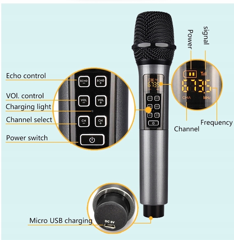 Высокое качество звука: микрофон обеспечивает чистый звук с соотношением сигнал/шум (SNR) ≥95 дБ и частотным диапазоном 100–20 кГц, что улучшает качество речи и пения.