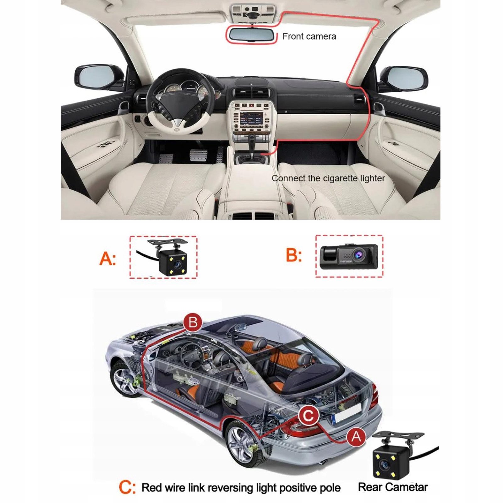 1. 1080p Качество изображения: эта автомобильная камера принимает качество изображения 1080p, что может четко захватить ситуацию перед автомобилем или за автомобилем во время вождения.