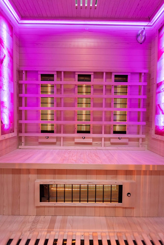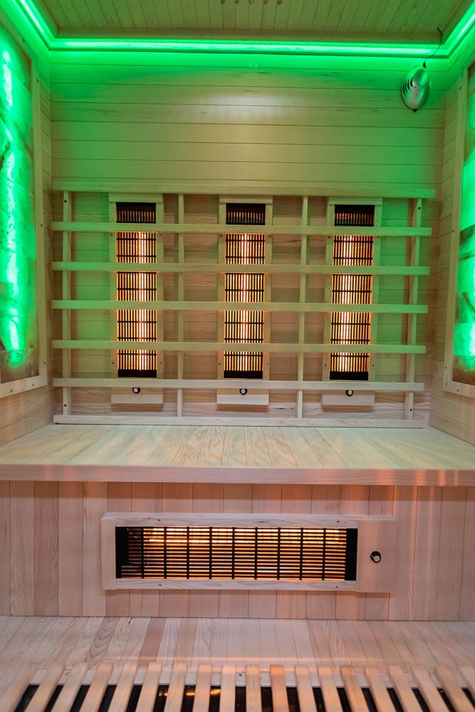 ИНФРАКРАСНАЯ САУНА НА ТРЕХ ЧЕЛОВЕК С СОЛЯНЫМ КАМНЕМ КАНАДСКАЯ СОСНА 150Х110Х190СМ
