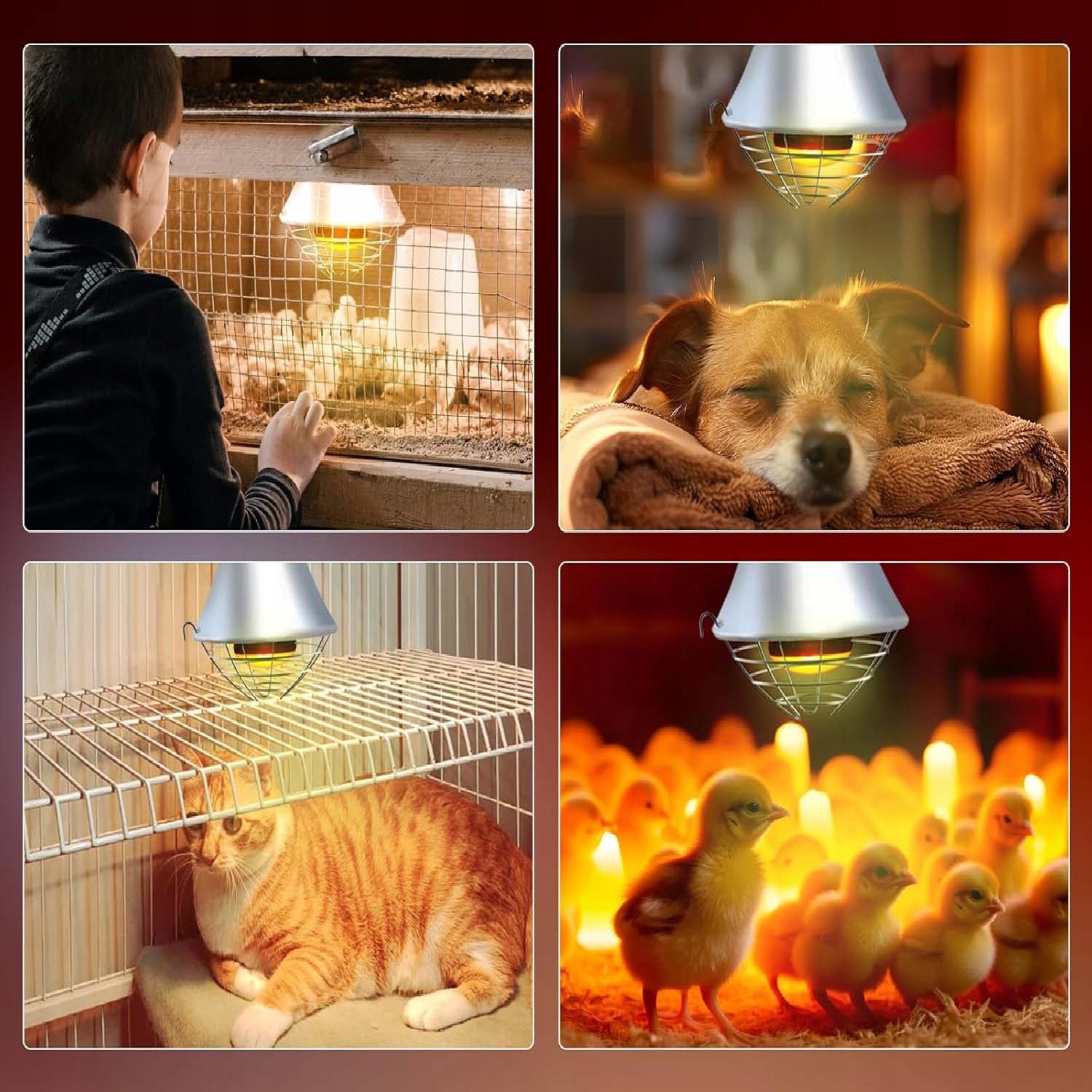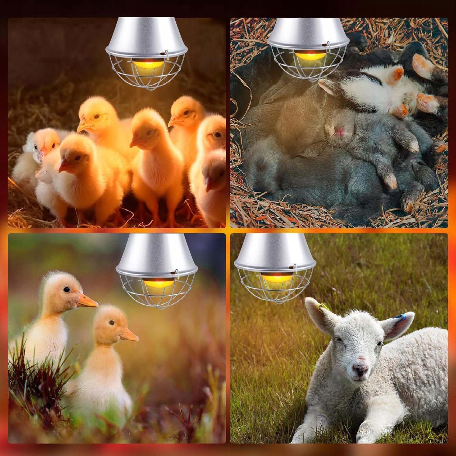 Красная инфракрасная нагревательная лампа подходит для различных животных, включая домашнюю птицу, кошек, собак, кроликов и рептилий, таких как бородатые драконы и змеи. Он также поддерживает здоровый рост тепличных растений и эффективно сохраняет пищу теплой.
