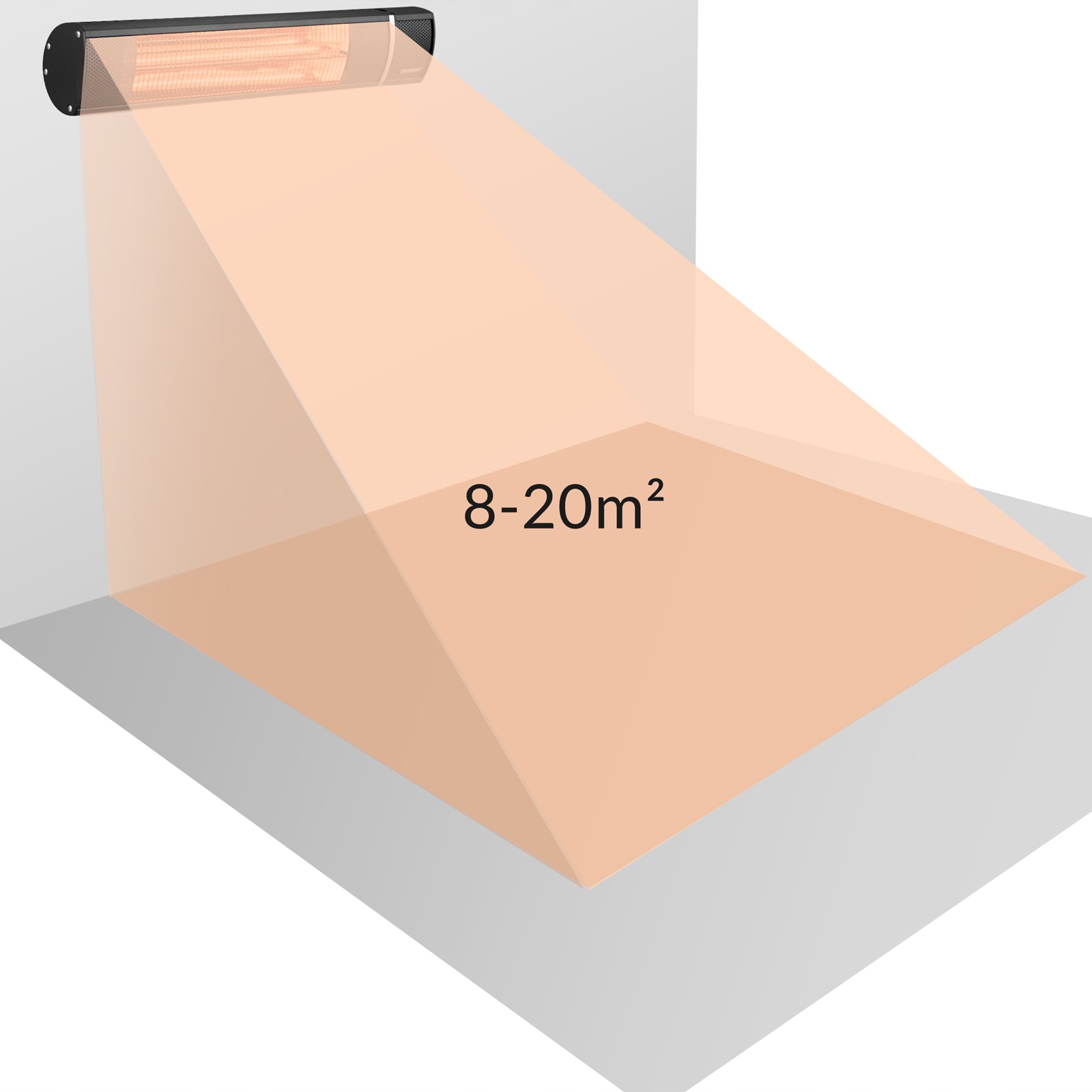 Использование пульта дистанционного управления может быть гибко выбрано между 3 уровнями тепла и индивидуально контролируемым тепловым излучением благодаря регулируемому углу 90 °.