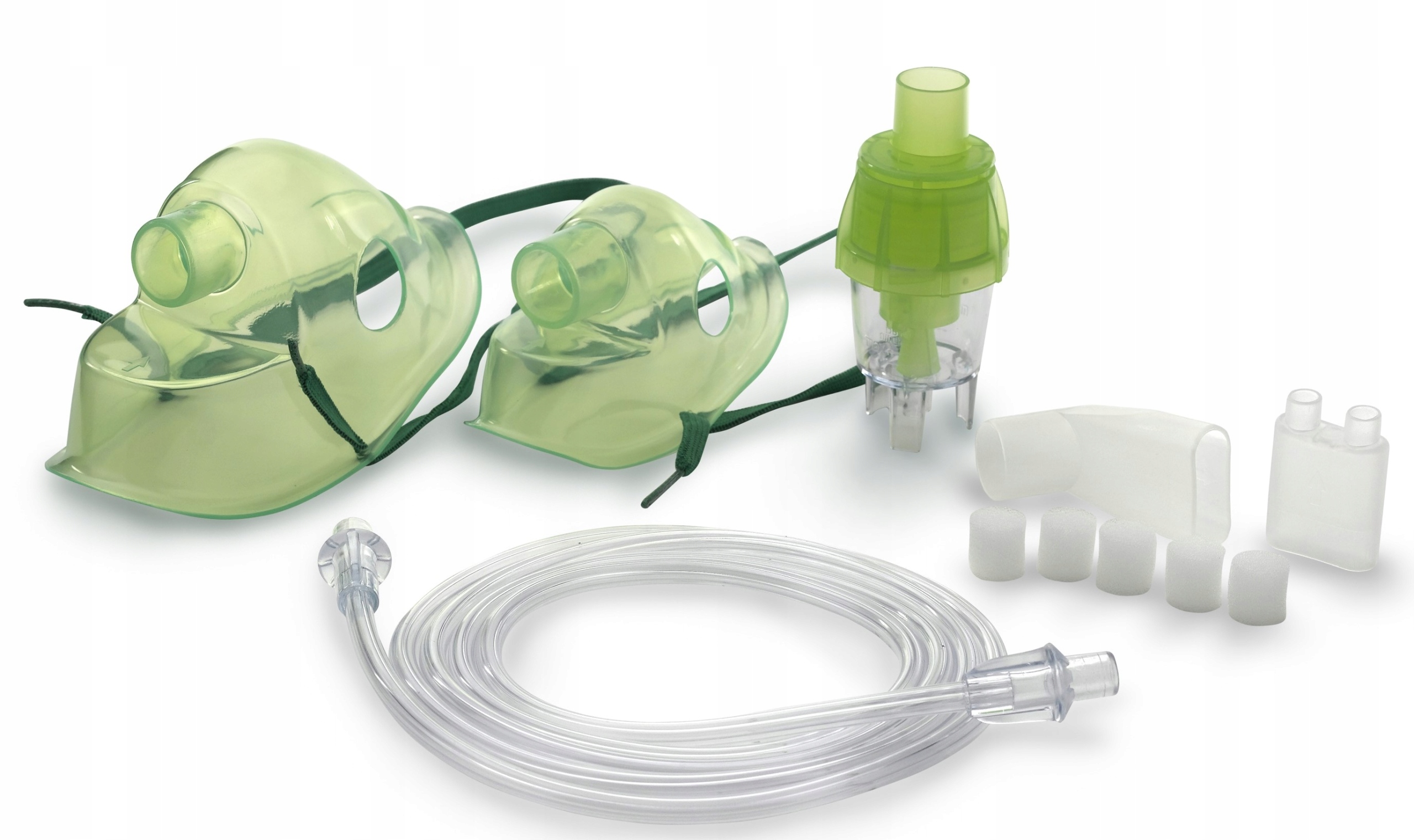 Полный набор зеленых аксессуаров для ингаляторов Omnibus, Professional, Monkey Milo, Premium, Nubi, Puppy Me, Air Nebulizer и других моделей ингаляторов.