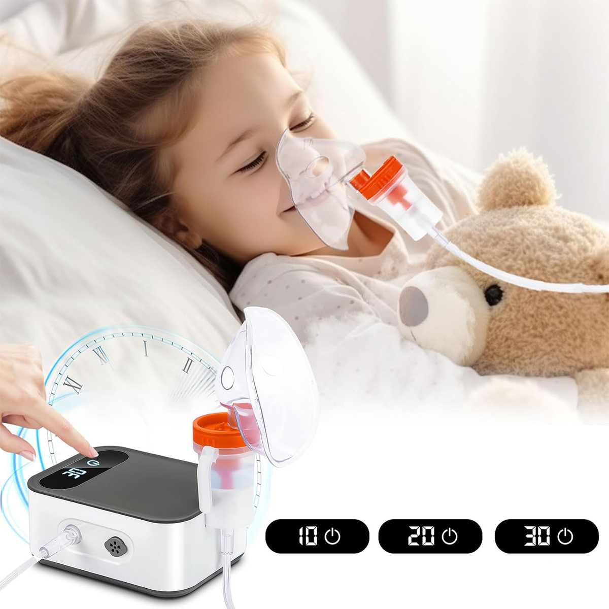 Благодаря таймеру вам не придется следить за часами – ингалятор автоматически прекратит работу по истечении выбранного времени. Это не только удобно, но и безопасно, особенно при ингаляции у детей или пожилых людей.