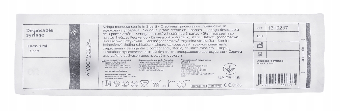 Инъекционный шприц 1 мл Vogt Medical 3 Частичный Luer - 1 кусок