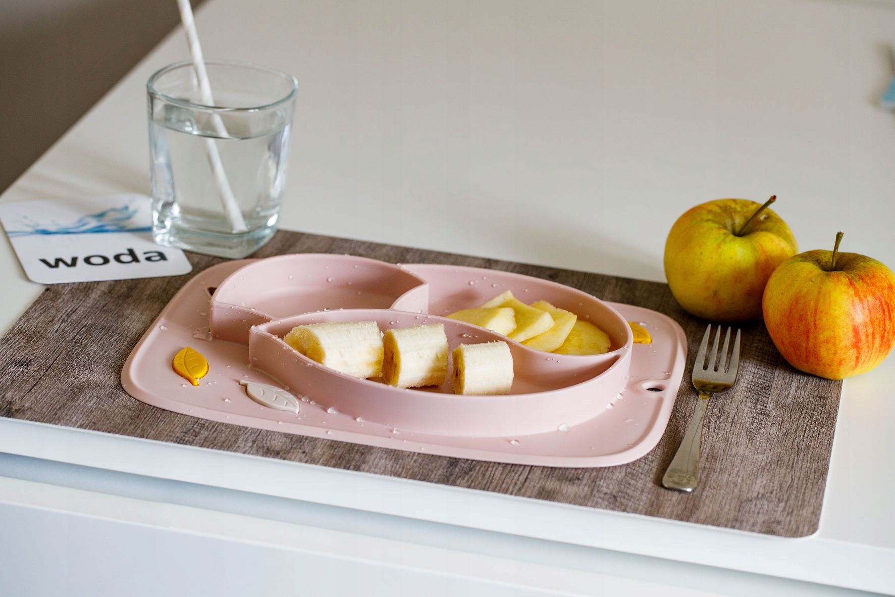 Тарелка имеет три отделения, в которых легко разместится обед из трех ингредиентов для ребенка. Прижмите тарелку к гладкой поверхности, чтобы детям было легче есть и чтобы тарелка не упала на пол.