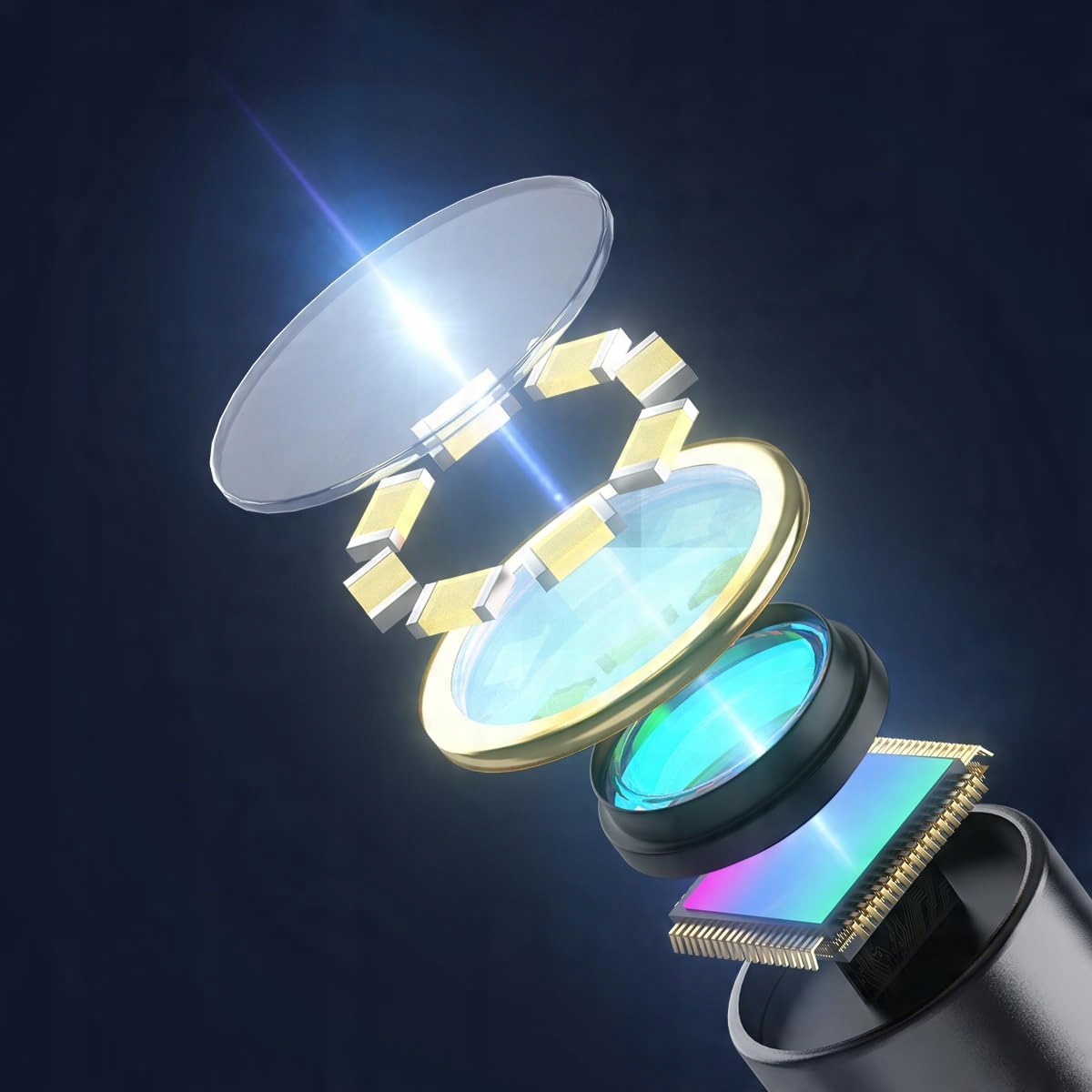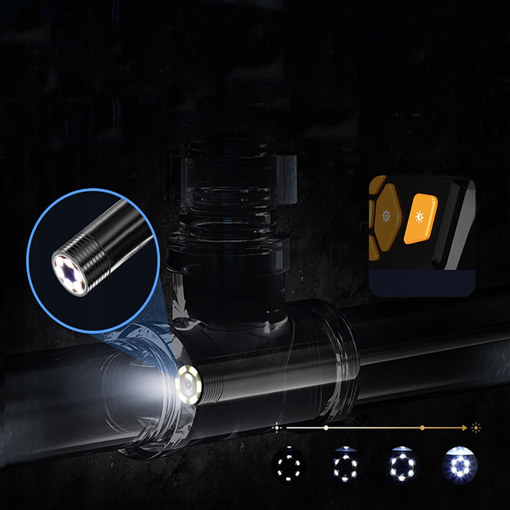 Эндоскопическая камера была оснащена водонепроницаемой объективом FHD. Он имеет угол просмотра 70 градусов . Вокруг объектива есть 8 эффективных светодиодов, которые позволяют вам осветить проверенную область. Съемки и живой вид в жестких местах больше не будут проблемой!
