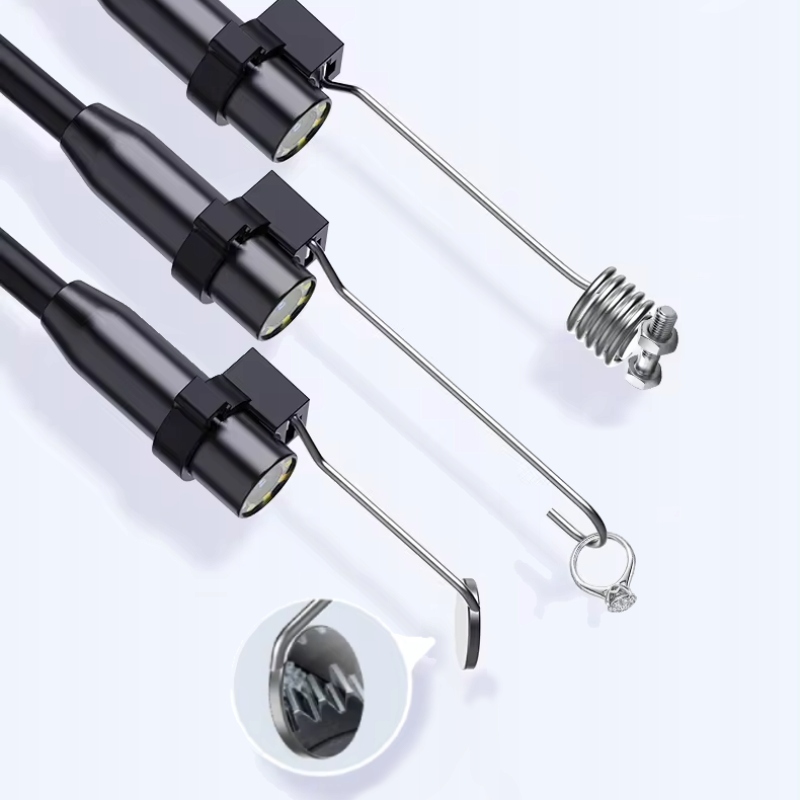 В комплект к эндоскопу С30-М входят три чрезвычайно практичных аксессуара, повышающих функциональность аппарата. Зеркало, крючок и магнит, установленные на передней части камеры, обеспечивают еще большую свободу во время осмотра. Зеркало позволяет смотреть под углом 90 градусов, крючок идеально подходит для вытаскивания мелких предметов, а магнит облегчает манипулирование металлическими элементами. Благодаря этим дополнениям эндоскоп С30-М становится еще более универсальным инструментом, который будет работать в любой ситуации.