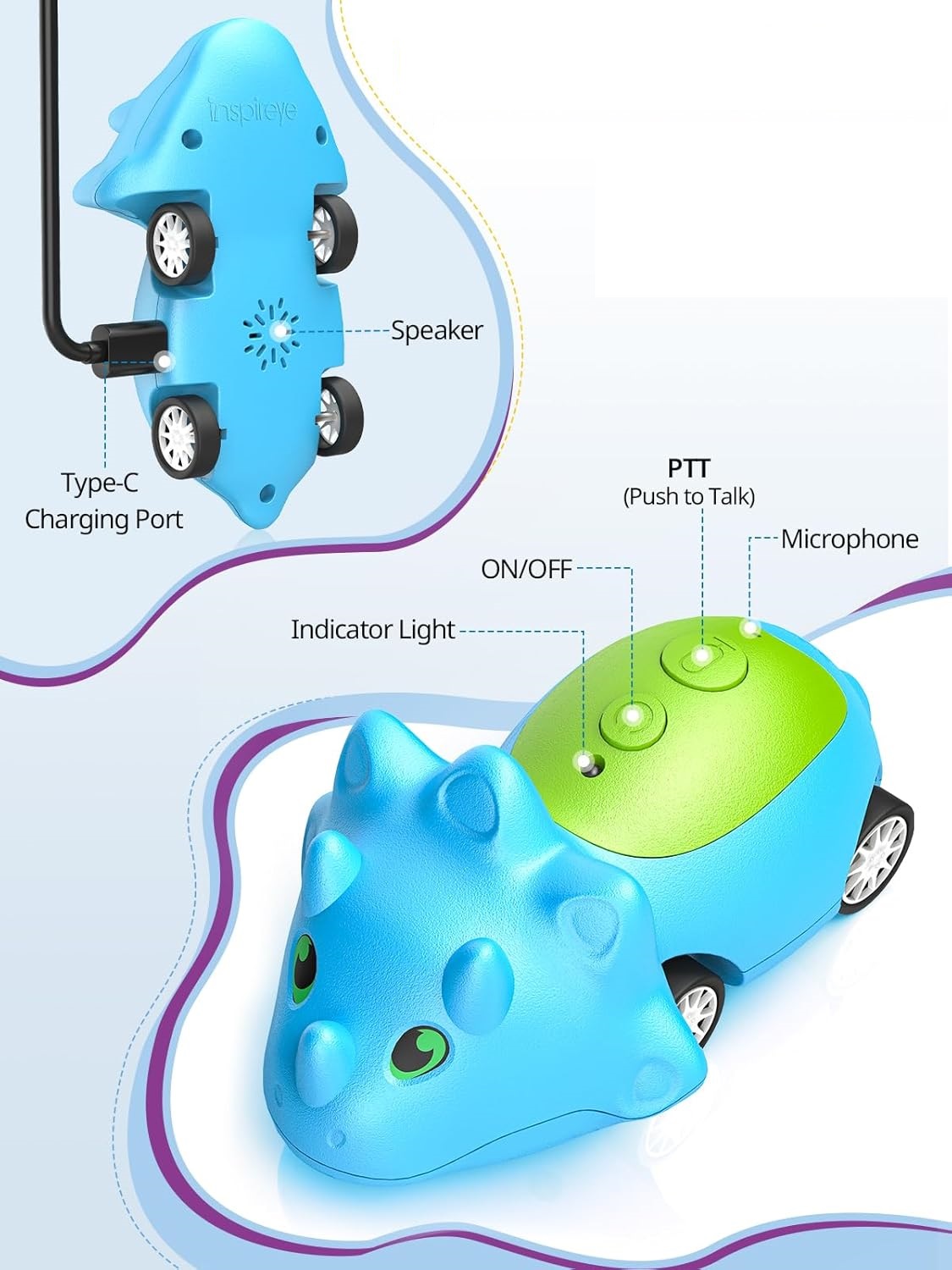 Рация Inspireyes для детей, рация с динозаврами, игрушечный автомобиль