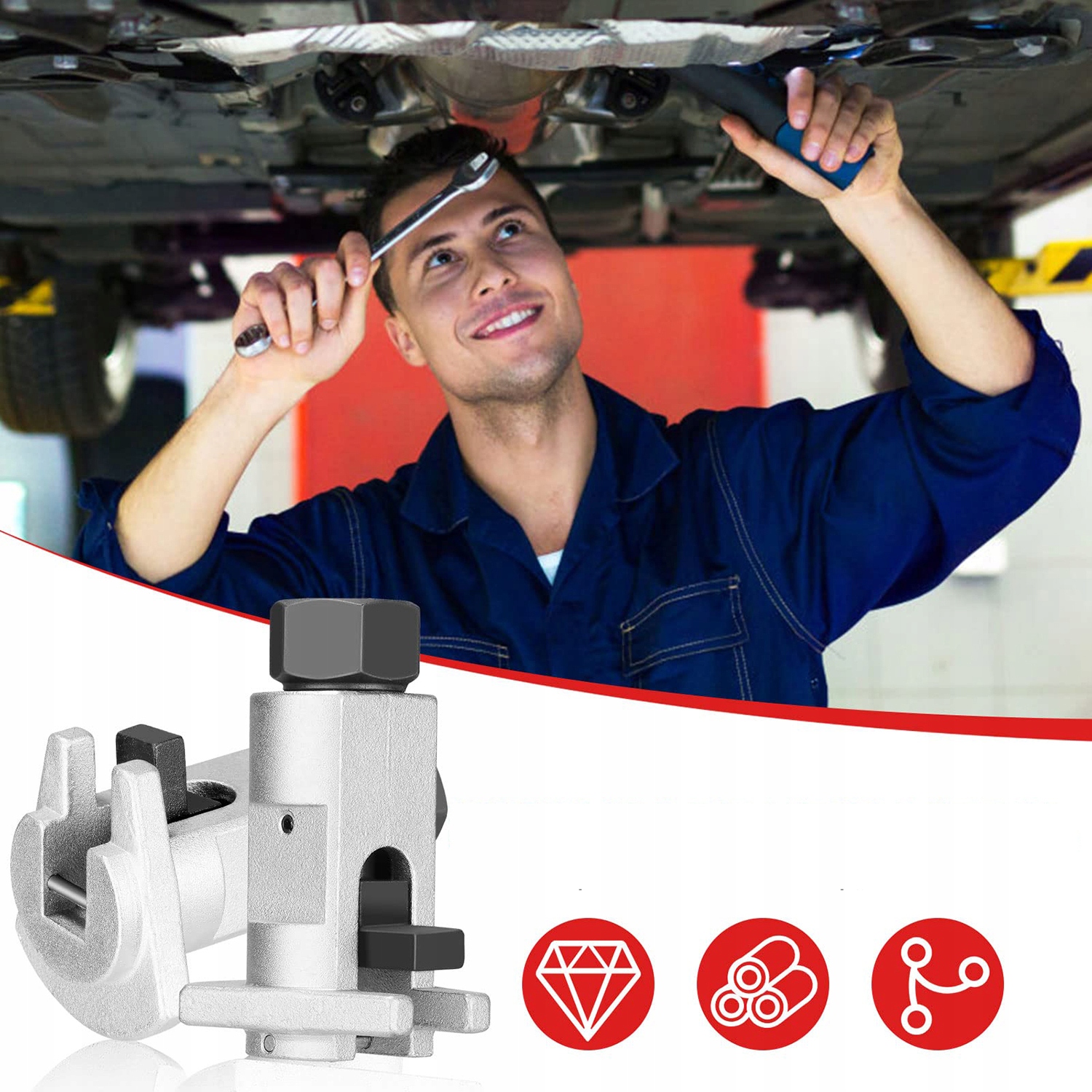 【Идеальная функция】 Благодаря параллельной прижимной поверхности, внешнему шестиугольному вращению 17 мм, самопомощяющемуся приводу и плавному раскладыванию он может эффективно предотвращать случайное выскакивание или проскальзывание инструментов, а также защищать стойки подвески и ступичные подшипники.