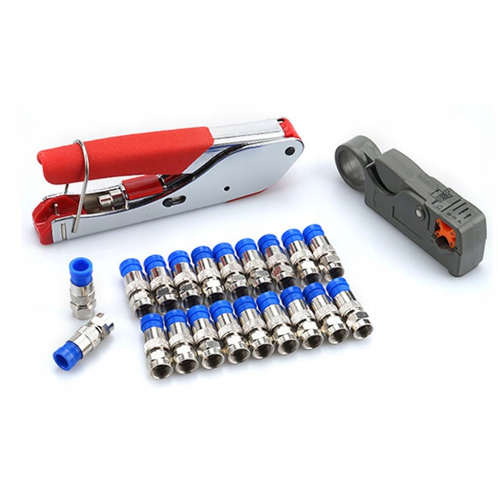 Инструмент для обжима коаксиального кабеля с набором из 20 синих разъемов