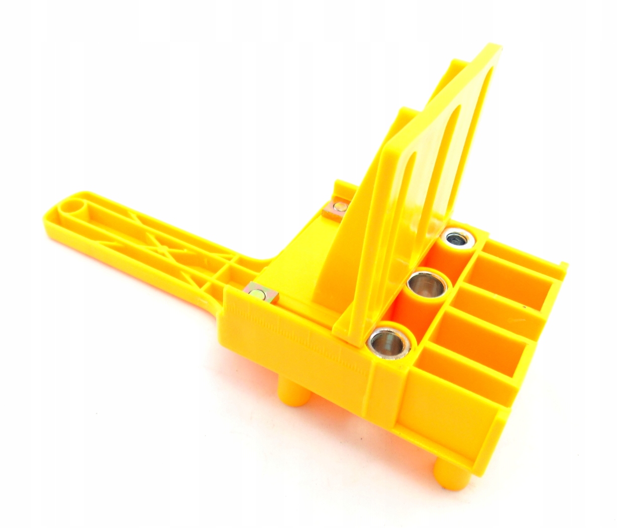 Универсальное приспособление для разметки мест для выполнения отверстий под дюбеля для соединения деревянных элементов, например мебельных щитов. Указывает центр кромки досок шириной 17 – 50 мм. Конструкция шаблона позволяет делать отверстия также на плоскости, а не только по краям. Изготовлены из сплава на основе алюминия, ввинченные в корпус стопорные втулки диаметром 6, 8, 10 мм изготовлены из закаленной стали. Простое, эффективное и точное устройство для профессионального использования и требовательных мастеров-любителей.