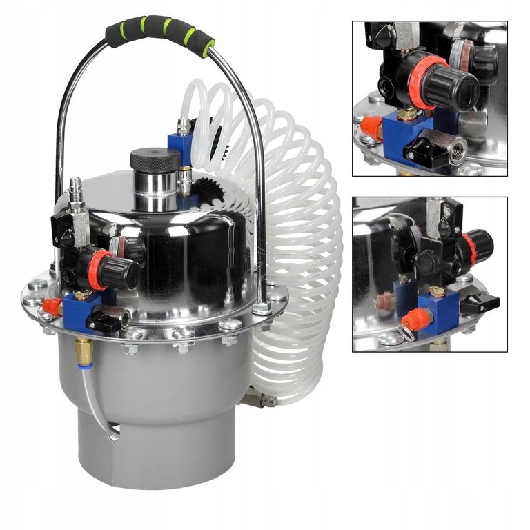 Устройство предназначено для слива, прокачки и замены жидкости в тормозных системах и гидромуфтах. Это позволяет одному человеку заменить жидкость в течение нескольких минут, без риска попадания воздуха в систему. Дополнительно устройство имеет специальный бак низкого давления, который можно предварительно заполнить сжатым воздухом. Благодаря этому устройство может работать без необходимости постоянной подачи сжатого воздуха. В комплект входит набор заглушек для наиболее популярных марок автомобилей.
