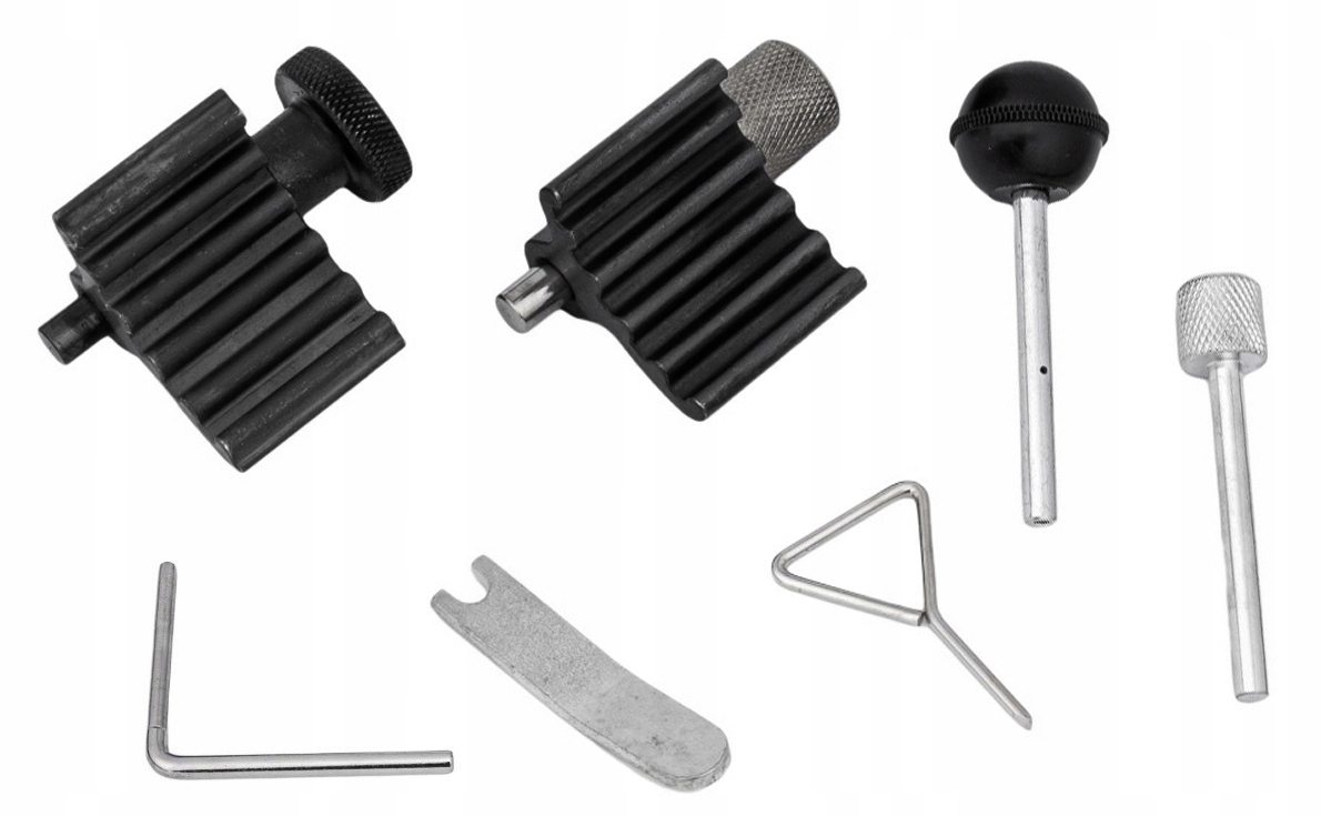 Набор позволяет зафиксировать распределительные шестерни в сервисное положение при замене ремня ГРМ. Особая форма замков позволяет точно устанавливать точки контроля зажигания. Замки блокируют шестерни газораспределительного механизма и коленчатого вала, а также ролик натяжителя ремня. Рекомендуется для профессионального использования в специализированных автосервисах.