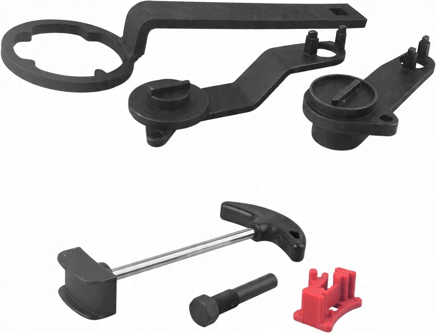 В комплект входят, среди прочего: фиксатор коленчатого вала, распределительный механизм, натяжной ролик и штифт вала.