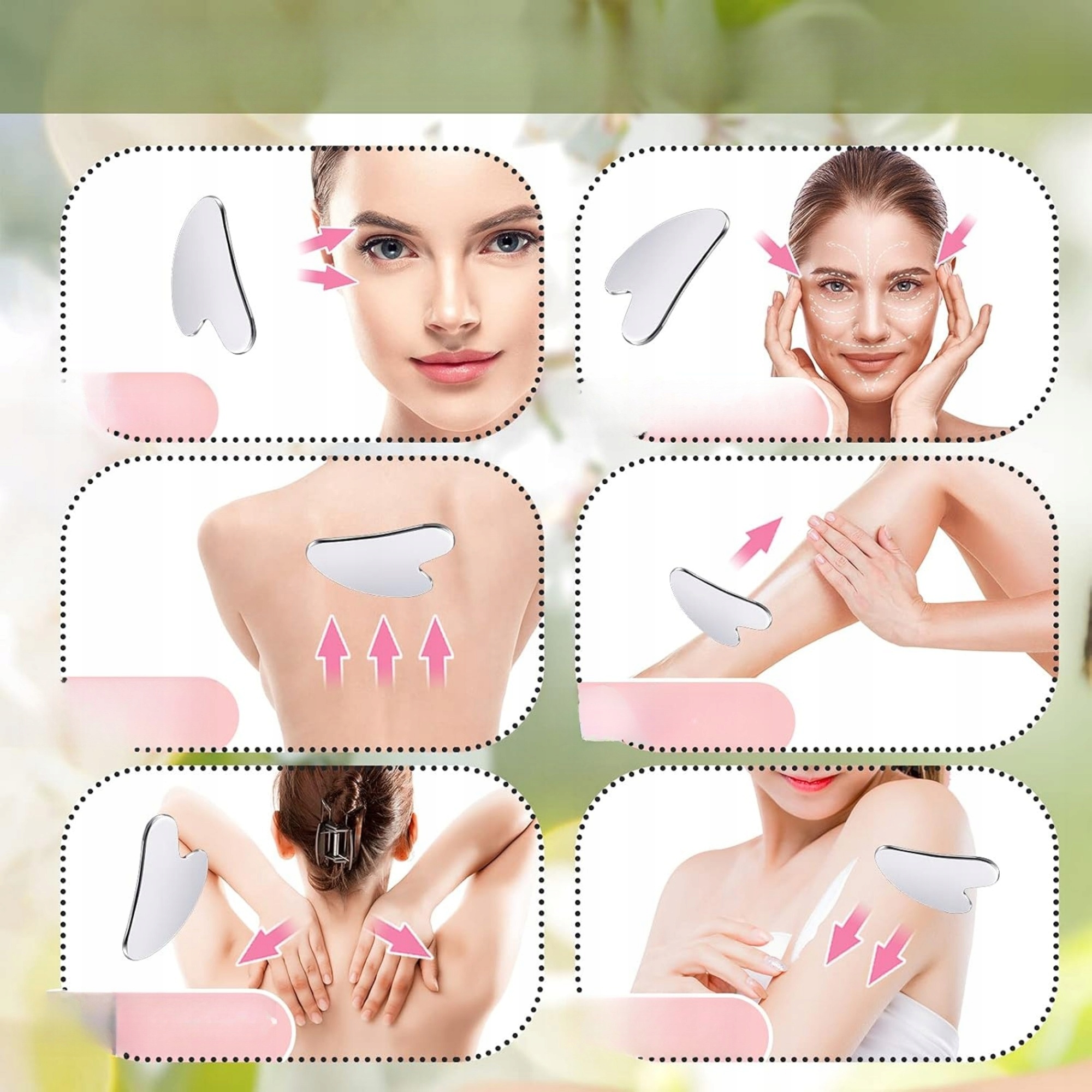 Высококачественный материал: инструмент Gua Sha изготовлен из высококачественной нержавеющей стали; обеспечивает стабильность и уменьшает трение, обеспечивая мягкую поддержку; Полированный на зеркальном сиянии, он гладкий и легко чистить; Это улучшенная версия традиционных камней Гуа Ша; В сочетании с массажными маслами или бальзамами плавно и аккуратно движется по коже без необходимости использовать чрезмерную силу