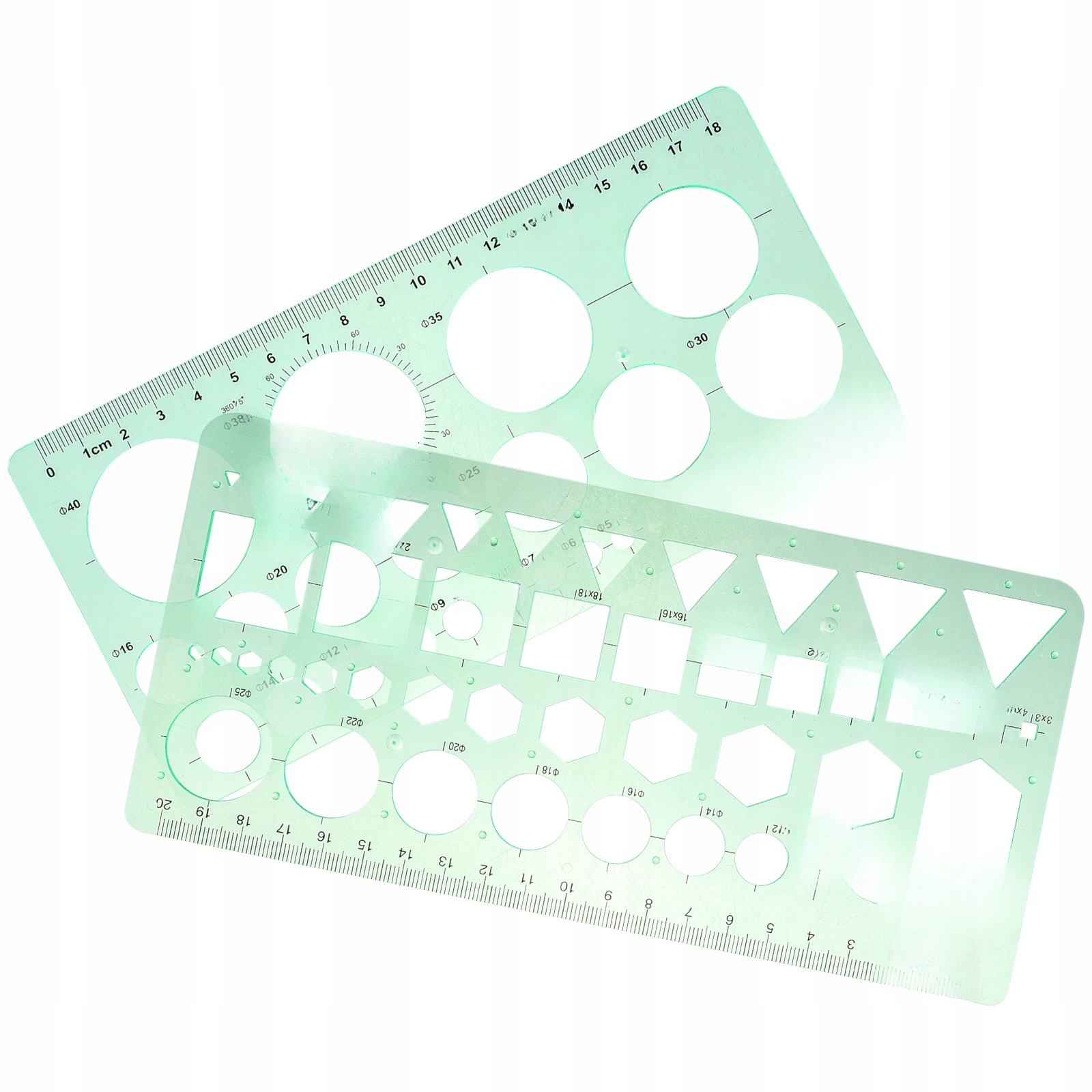 МНОГОФУНКЦИОНАЛЬНЫЕ ЗЕЛЕНЫЕ ПЛАСТИКОВЫЕ ПРАВИЛА, 2 ШТ. ШАБЛОНЫ ДЛЯ СТУДЕНТОВ