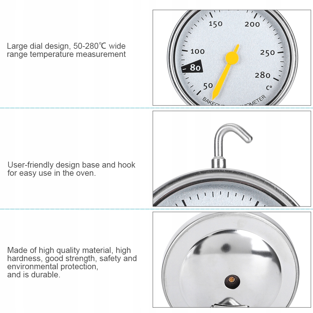 Термометр духовки из нержавеющей стали с большим диском и инструментами измерения крючка для приготовления на кухне 50-280 ℃