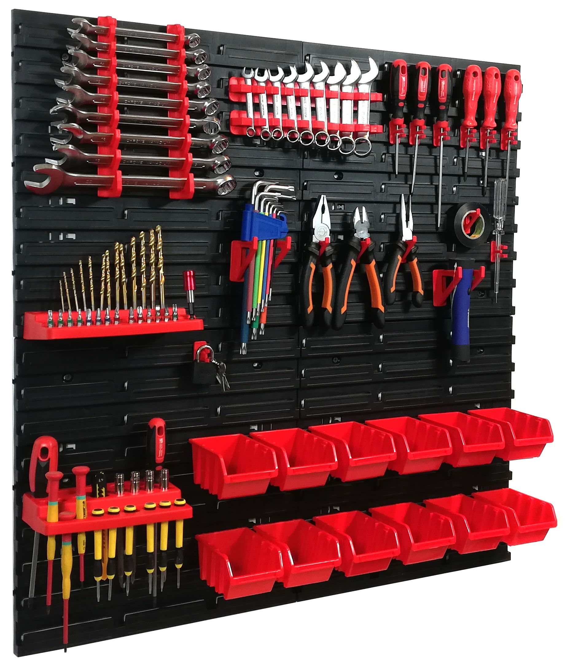 Несмотря на то, что доски, держатели и контейнеры пластиковые, отлично подойдут как в профессиональной мастерской, так и в домашнем гараже.