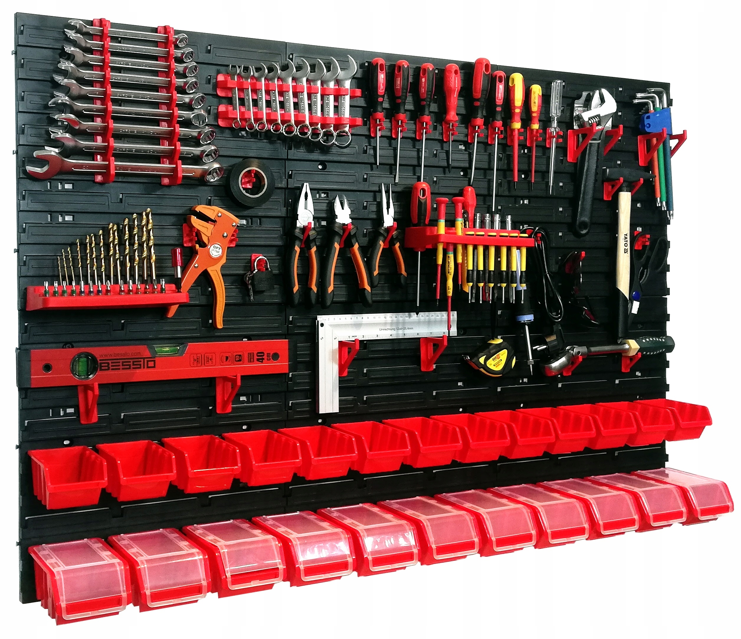 Несмотря на то, что доски, держатели и контейнеры пластиковые, отлично подойдут как в профессиональной мастерской, так и в домашнем гараже.