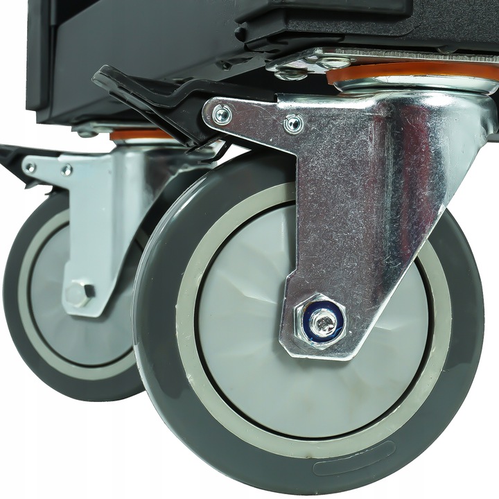 ✔️ 2 фиксированных колеса и 2 поворотных колеса диаметром 125 мм, оснащенные подъемником
