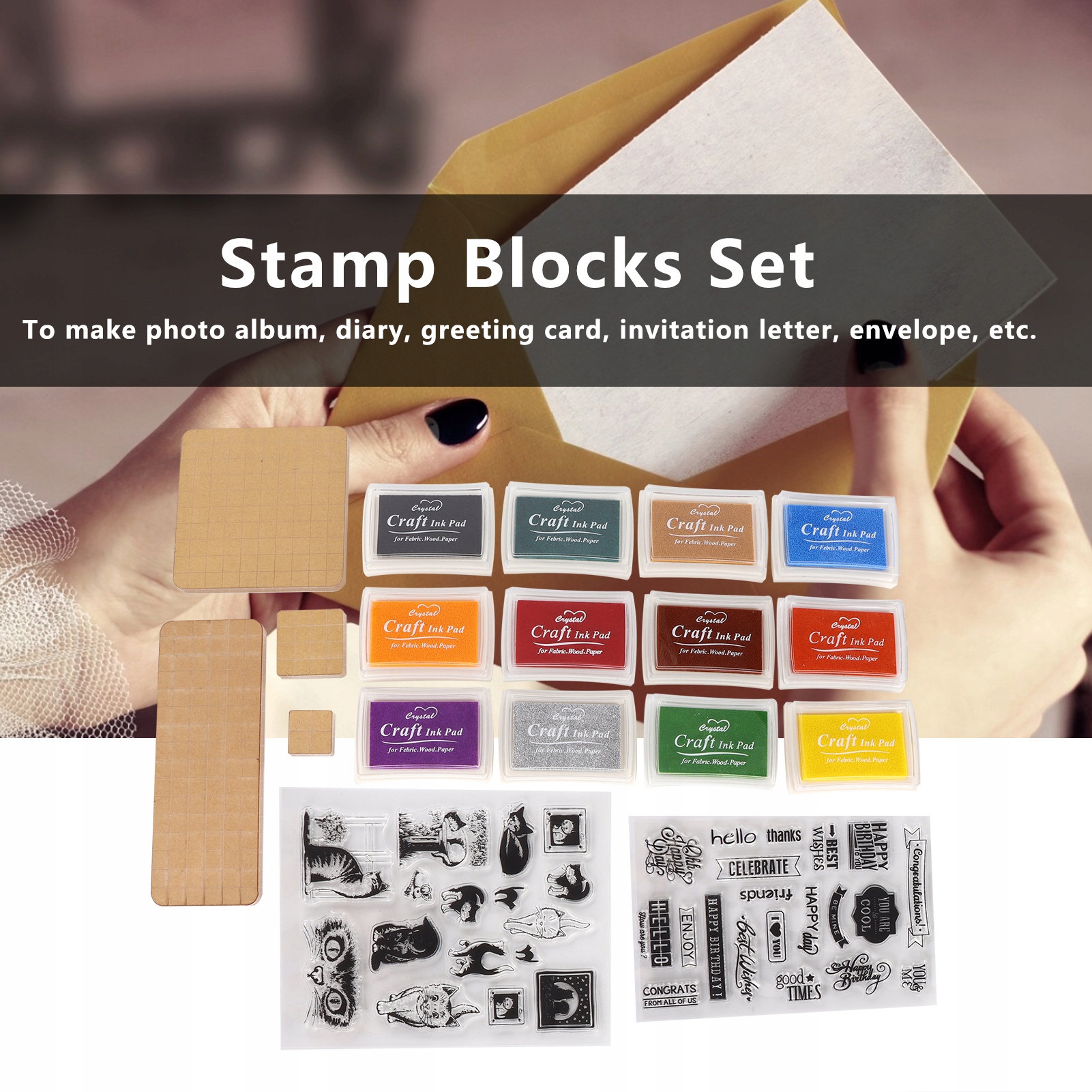 1. Прозрачный блок штампов изготовлен из высококачественного акрила, который является долговечным и долговечным, нелегко разорвать и может храниться в течение длительного времени. Округлые края делают его гладким и удобным в повседневном использовании, безопасно для захвата и избегания травм рук. 12 различных разноцветных вставки для струйных знаков могут привлечь внимание детей и вдохновлять их воображение. Пользовательские и легкие подушки с чернилами растворимы в воде и могут быть очищены мылом и водой. Прозрачная прокладка изготовлена из высококачественного материала, который не наносит вреда коже. Легко использовать фотоальбом, дневник, поздравительные открытки, приглашения, конверты и т. Д.