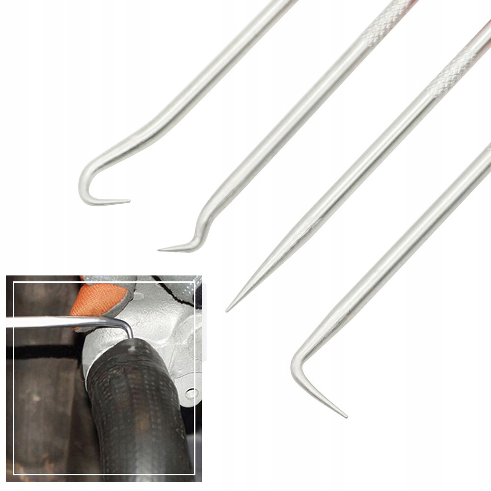 Инструменты, предназначенные для снятия уплотнительных колец, сальников и всех типов уплотнений. Изготовлены из стали, устойчивой к изгибу и деформации. Ручки покрыты противоскользящим покрытием, что обеспечивает устойчивый хват. В комплект входят крючки с наконечниками: прямой угол, угол 45°/90°, 45°/45 ° угол, закругленный и прямой.