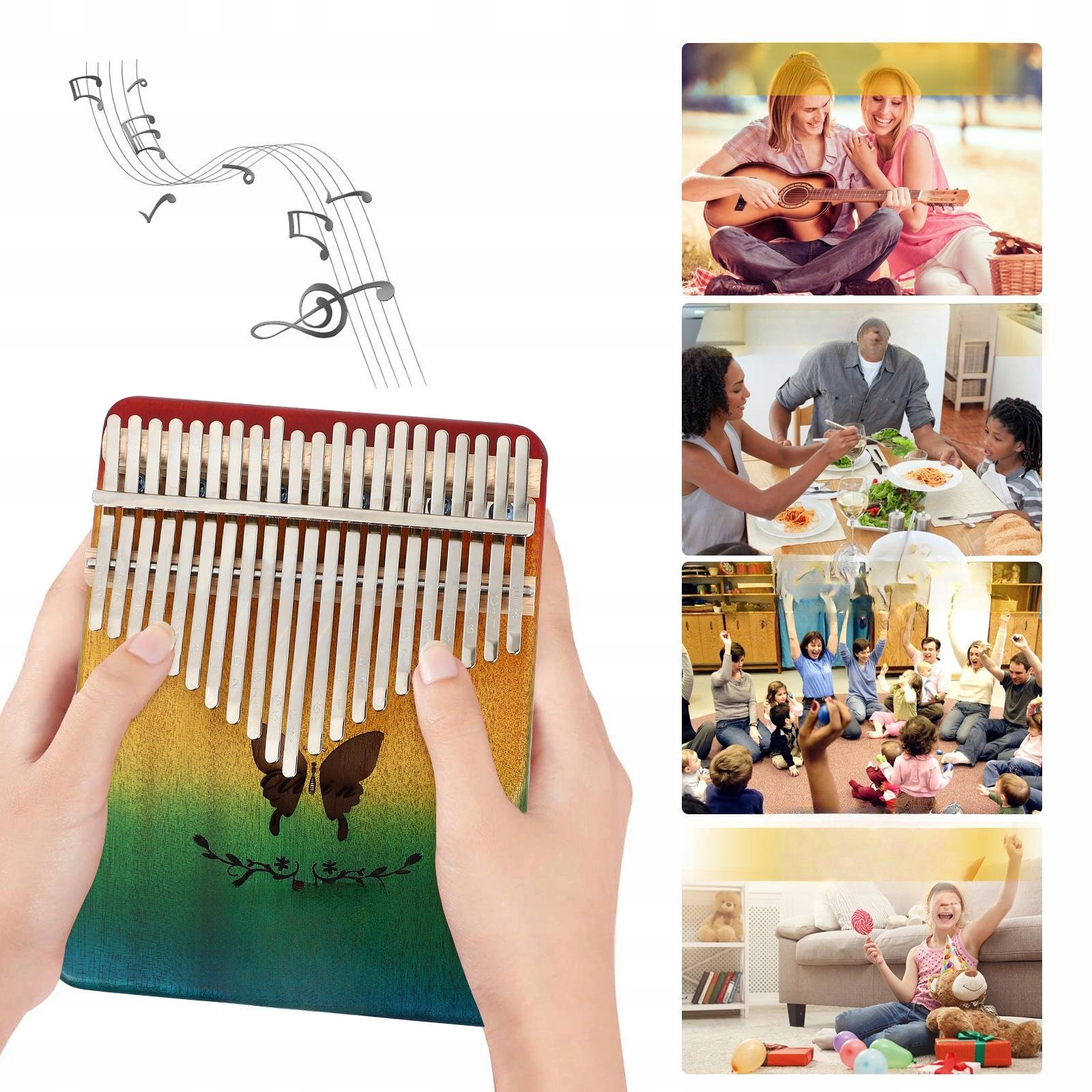 ✅nadaje się do podrógy, dekompresji, dekoracji domu, biura i Studia i Jest Dobrym prezentem muzycznym dla przyjaciół i rodziny. Wykonaniem Sprawia, że to pianino kciukowe ma nie tylko ładny wygląd, ale także posiada piękną melodię.