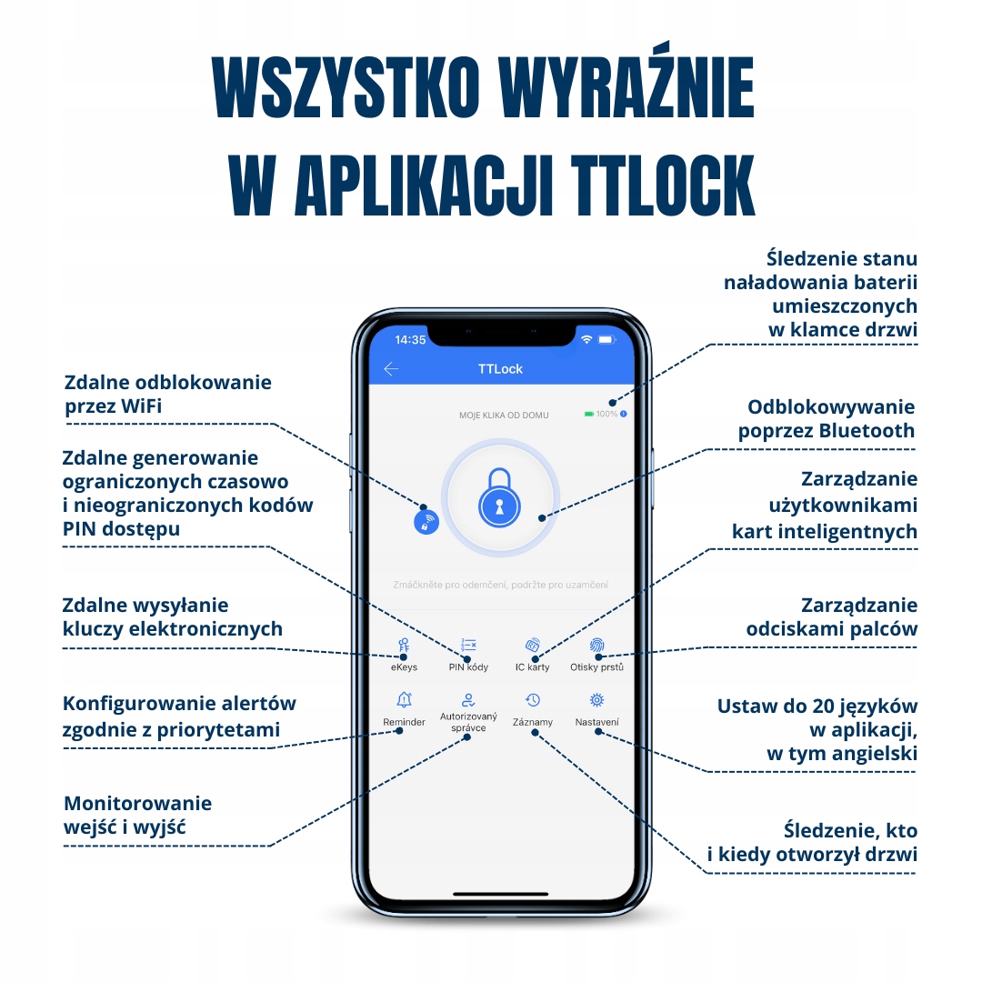 Установка интеллектуальной ручки проста и обычно занимает не более часа. Служба интеллектуальной ручки само по себе является пользовательским, и ручка может быть легко настроена. Дверная ручка настроена и работает с использованием приложения TTLock на мобильном телефоне, поэтому вы можете работать с ручкой в любое время. Используя приложение TTLock, вы можете установить разрешения для отдельных пользователей, отслеживать историю или установить ограниченное время ввода данных. Другим вариантом является управление без мобильного телефона, вводя код непосредственно на ручку или используя запасной ключ.