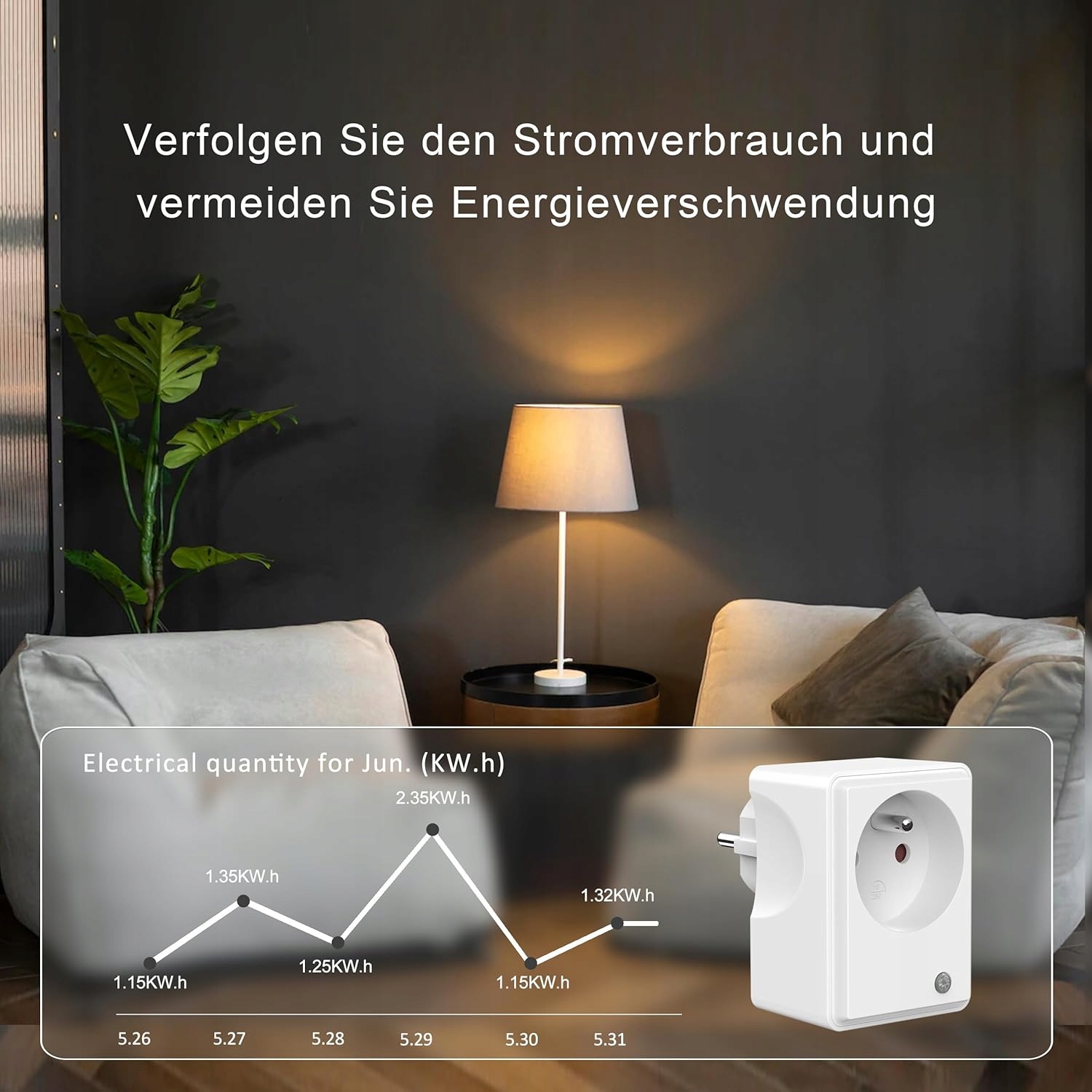 Uomen Intelligent WLAN Socket для измерения потребления энергии, совместимый с Alex, Google Home, пульт дистанционного управления, голосовой контроль, интеллектуальной функции плагина, H1> об этом предмете h1> - Измерение потребления энергии: Alexa Smart Lappise предоставляет отчеты о потреблении энергии во время подключенных к режиму времени. Благодаря этому вы можете обратиться за точным потреблением энергии по бытовым приборам.