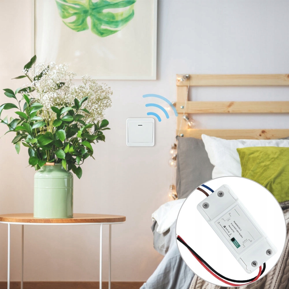 - Беспроводной переключатель прост и практичен, поскольку не требует проводки между выключателем и лампой.