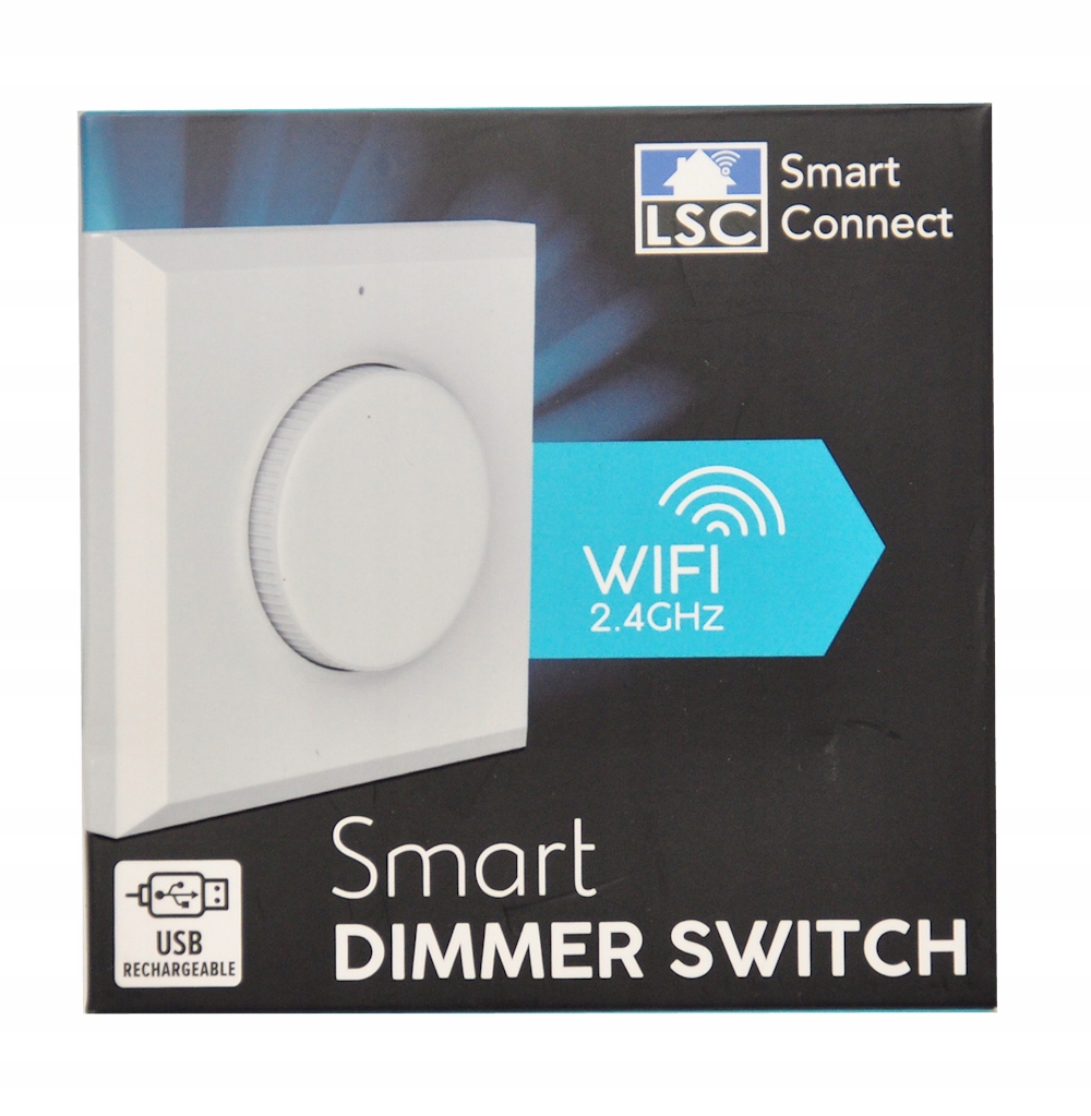 Управляйте светильниками и розетками LSC Smart Connect напрямую с помощью этого диммера с перезаряжаемым USB.