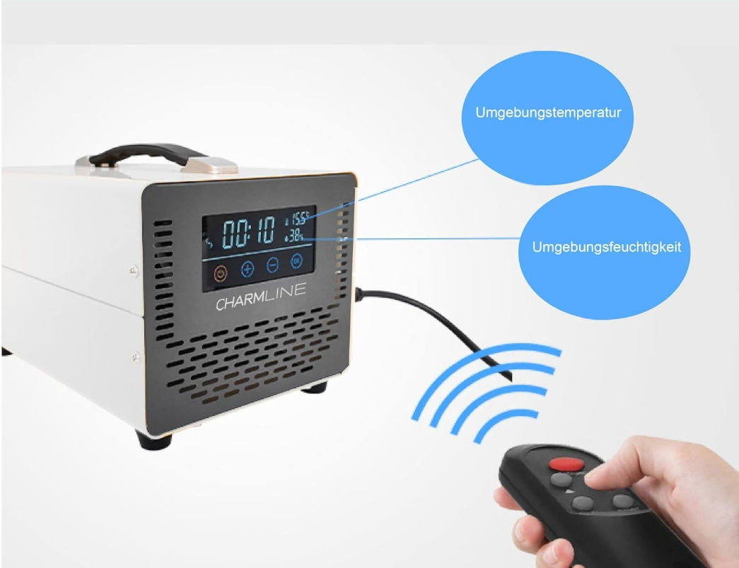- Умное управление: поддерживает дистанционное управление, поэтому вы можете включать и выключать генератор озона с безопасного расстояния и устанавливать таймер (без риска вдохнуть озон). Генератор озона постоянно контролирует температуру и влажность воздуха и регулирует рабочие параметры для обеспечения оптимальной работы устройства.