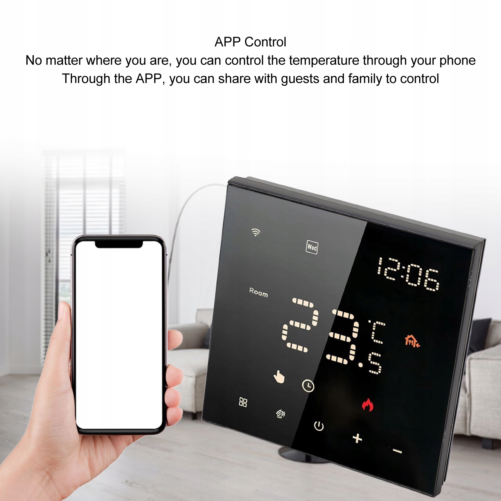 1, широко совместимый: этот термостат подходит для 90% домашних систем, включая C -адаптеры для домов без линии C. Список 2, 7 дней: использование нашего термостата может создать график вашего ежедневного расписания, например, возвращение домой, сон, уход дома, более удобно. 3, Интеллектуальное управление приложениями: после подключения через Wi-Fi, независимо от того, где вы находитесь, вы можете управлять температурой, используя мобильное приложение. 4. Обмен семей: благодаря заявке вы также можете предоставить термостату гостям и семье, чтобы контролировать его вместе. 5, Цифровой сенсорный экран: термостат использует цифровой сенсорный экран, который чувствителен к управлению и простым в использовании.