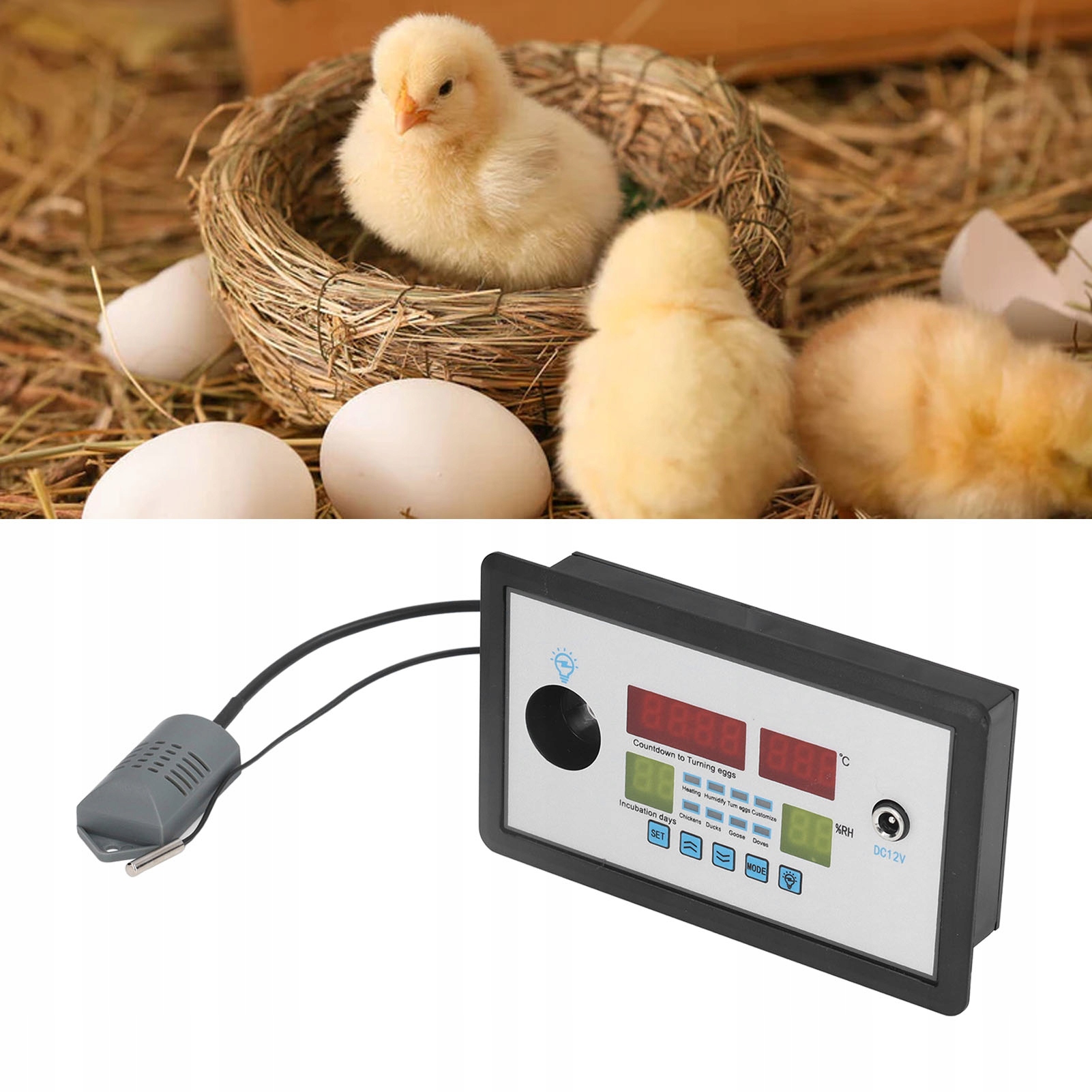 1. Многофункциональность: интеллектуальный термостат инкубатора с отображением влажности и температуры в реальном времени, таймером обратного отсчета дней инкубации и подсветкой яиц.
