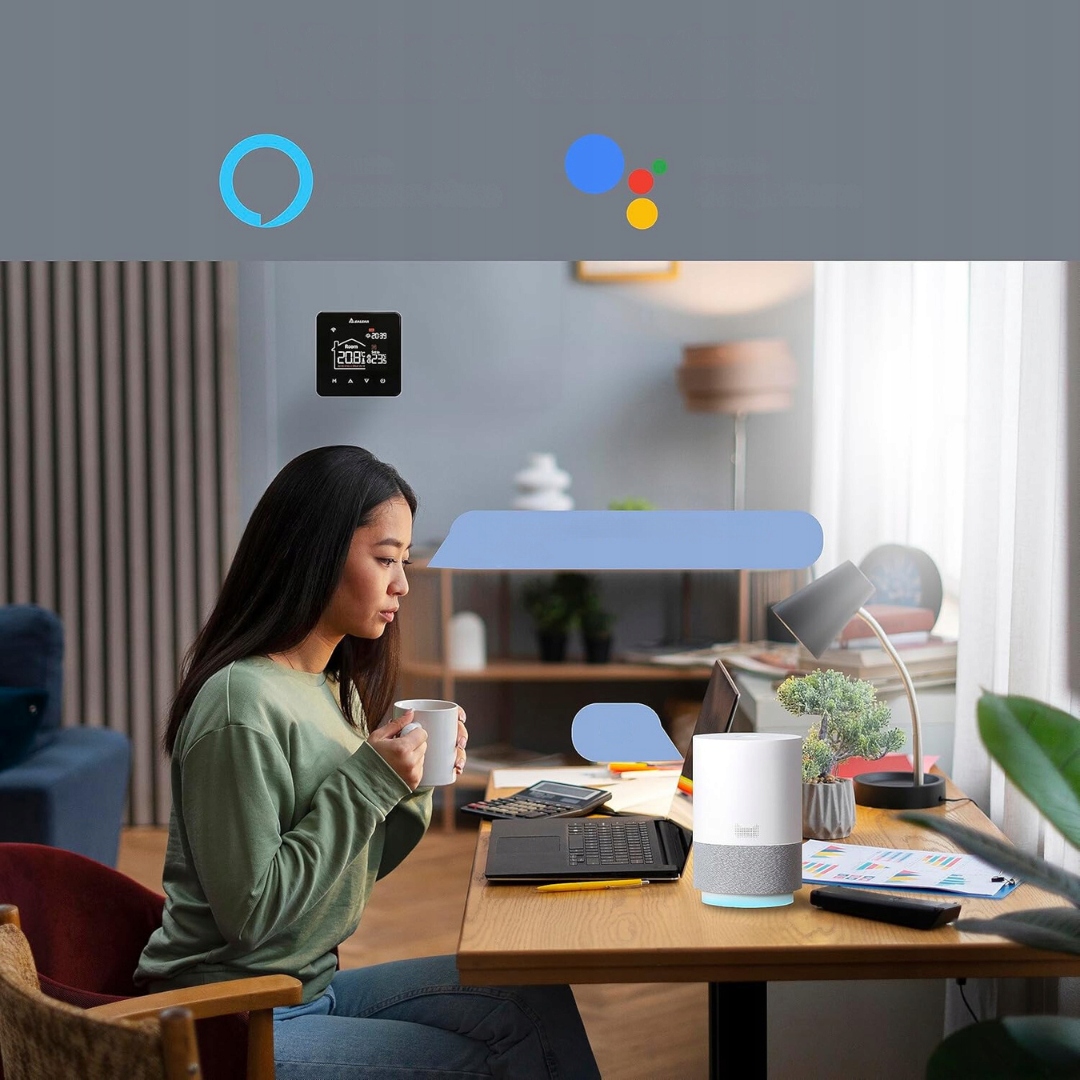 - Пульт дистанционного управления, голосовое управление: умный термостат Wi-Fi для электрического теплого пола позволяет управлять им дистанционно через приложение и голосом. Вы можете управлять отоплением где угодно и когда угодно с помощью приложения Tuya Smart Life. После подключения учетной записи приложения к учетной записи Amazon или Google можно использовать Amazon Alexa или Google Assistant для интеграции с системой «Умный дом» и голосового управления