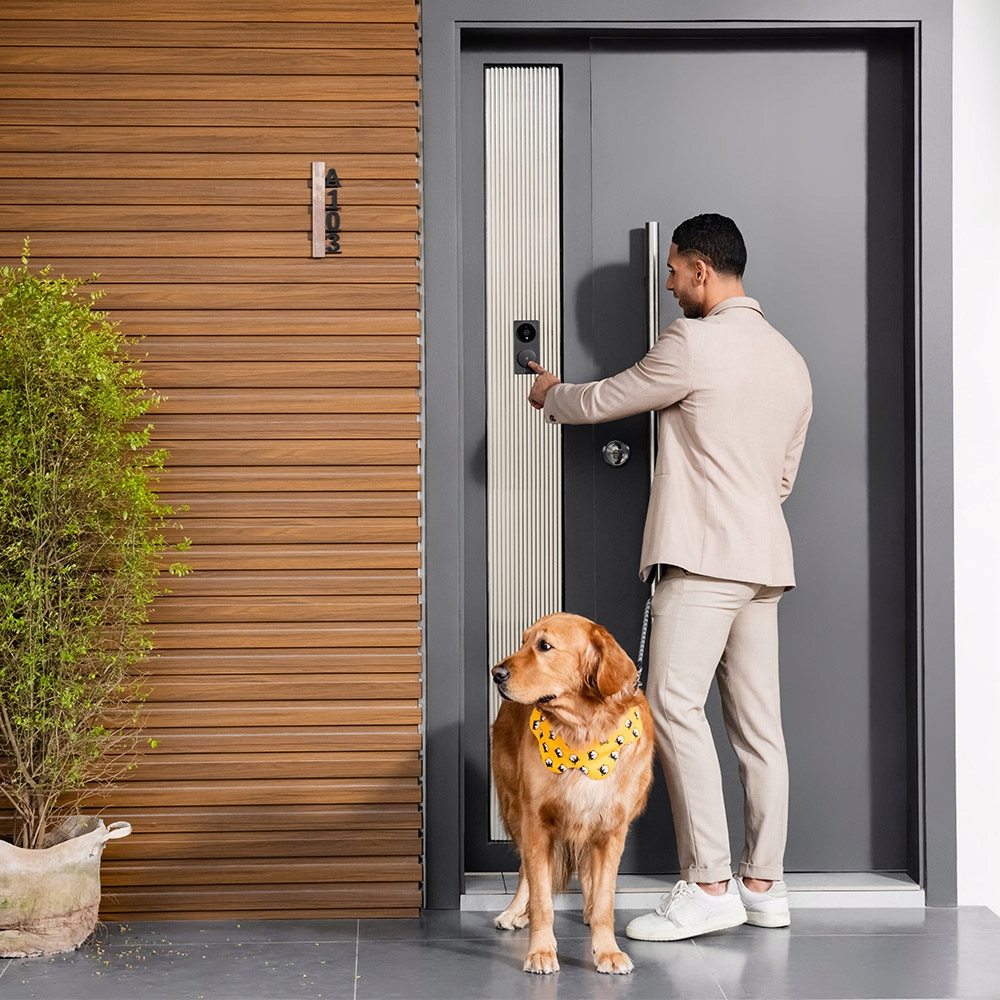 Устройство оснащено внешней камерой с широким углом обзора 162° и возможностью записи изображений в разрешении 1080p. Благодаря этому решению вы можете проверить, кто находится у двери, или начать живой разговор из любого места, где есть доступ в Интернет. Дополнительным преимуществом дверного звонка является функция локального распознавания лиц — если данный человек есть в базе данных устройства, вы получите информацию о его распознавании, а также сможете создавать многочисленные автоматизации на основе этой функции.