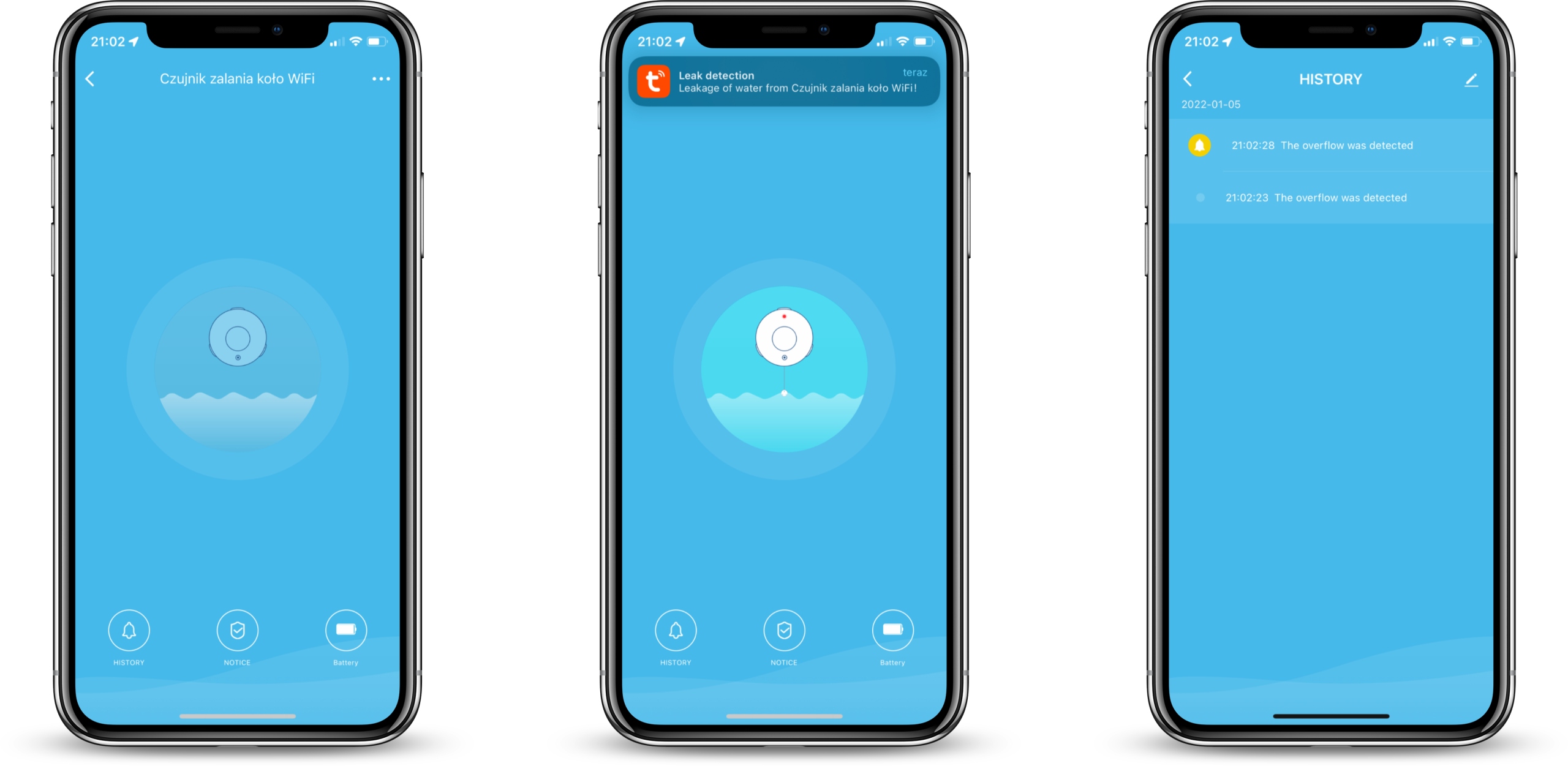 Данные измерений сохраняются на сервере Tuya, поэтому вы можете проверить, было ли обнаружено наводнение.