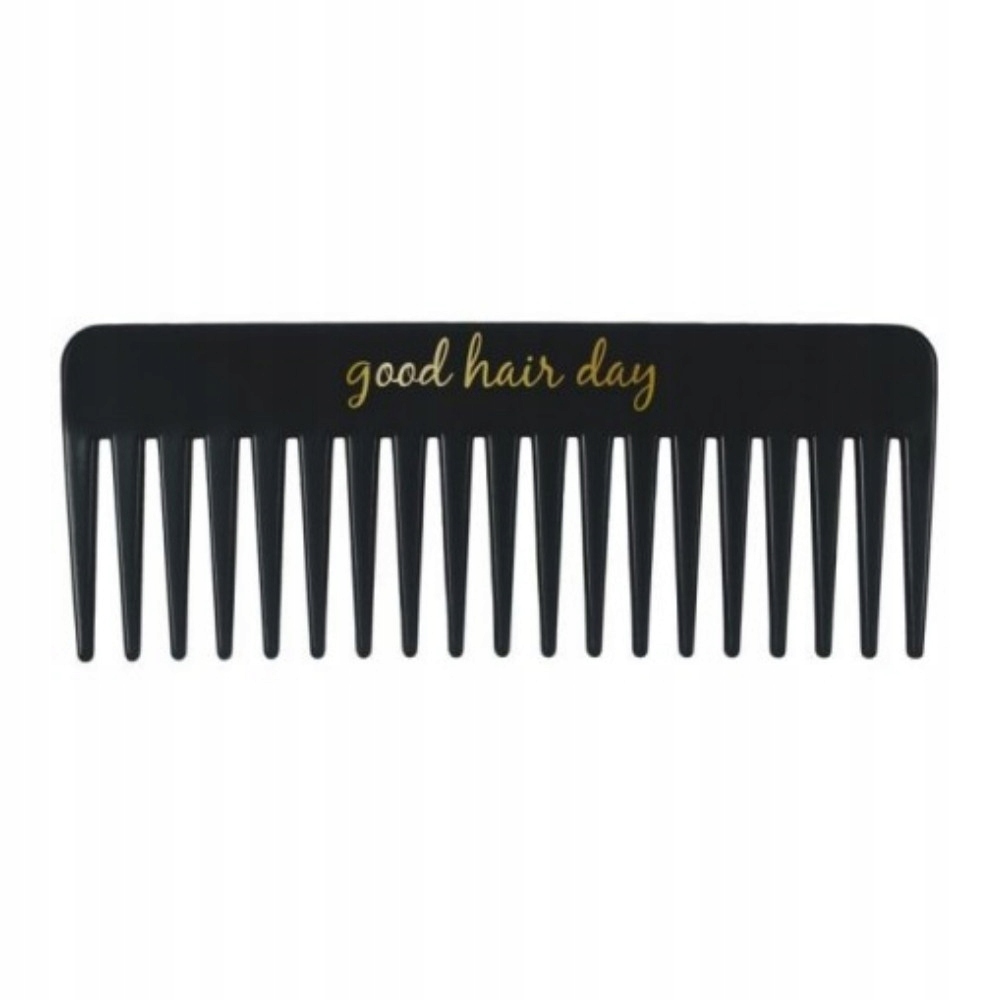 Расческа с широко расставленными зубцами и модной надписью Good Hair Day. Многофункционален, подходит как для влажного, так и для сухого расчесывания волос, а также для нанесения любых средств по уходу за волосами. Соответствующее расстояние между зубцами позволяет расчесывать волосы, не разрывая и не выдергивая их, а значит, не повреждая структуру волос. Удобный, поместится в сумочке.