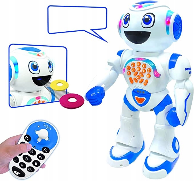 Самая полная версия Powerman с более чем 300 обучающими викторинами и 6 обучающими функциями. Польскоязычный робот для детей, который разговаривает, имитирует ваши движения, играет музыку и имеет множество световых и звуковых эффектов! С помощью создателя историй вы сможете создать до 10 000 забавных и безумных историй! Робот также знает 10 басен Эзопа, которые станут отличными сказками на ночь.