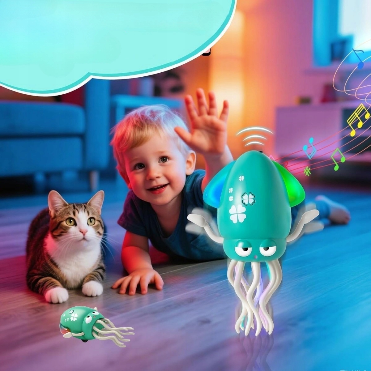 Познакомьтесь с удивительным интерактивным осьминогом «Электрический кальмар», который приведет в восторг каждого ребенка! Эта энергичная игрушка может стоять, лежать, ходить и двигать щупальцами в ритме веселых звуков и мигающих огней. Это идеальное предложение для маленьких исследователей от 3 лет, которые любят движение, цвет и музыку!