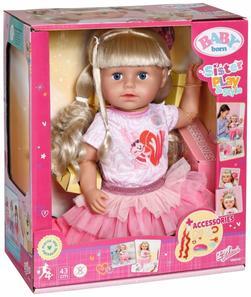 Маленькая сестра — старшая сестра маленького Бэби Борна. Симпатичная блондинка одета в забавную футболку, тюлевую юбку и розовые леггинсы, которые дают ей свободу движений.