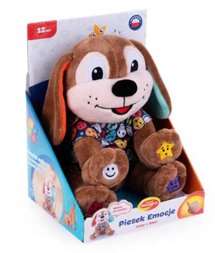 Образовательные Dog Emotions – это интерактивная игрушка, которая помогает детям распознавать и называть эмоции, а также изучать цвета и формы. Разработанная для детей от 12 месяцев, игрушка говорит и поет на польском языке, что делает ее идеальным компаньоном в развитии эмоциональных и познавательных навыков вашего малыша.