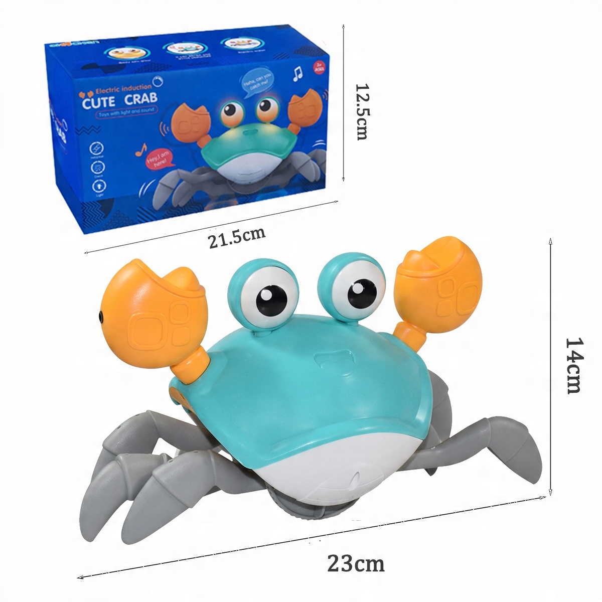 Наш краб прекрасно ползает и обходит препятствия. Когда он сталкивается со стеной или предметом мебели, он разумно меняет направление, обеспечивая непрерывное развлечение и увлекательный урок логики для вашего малыша.
