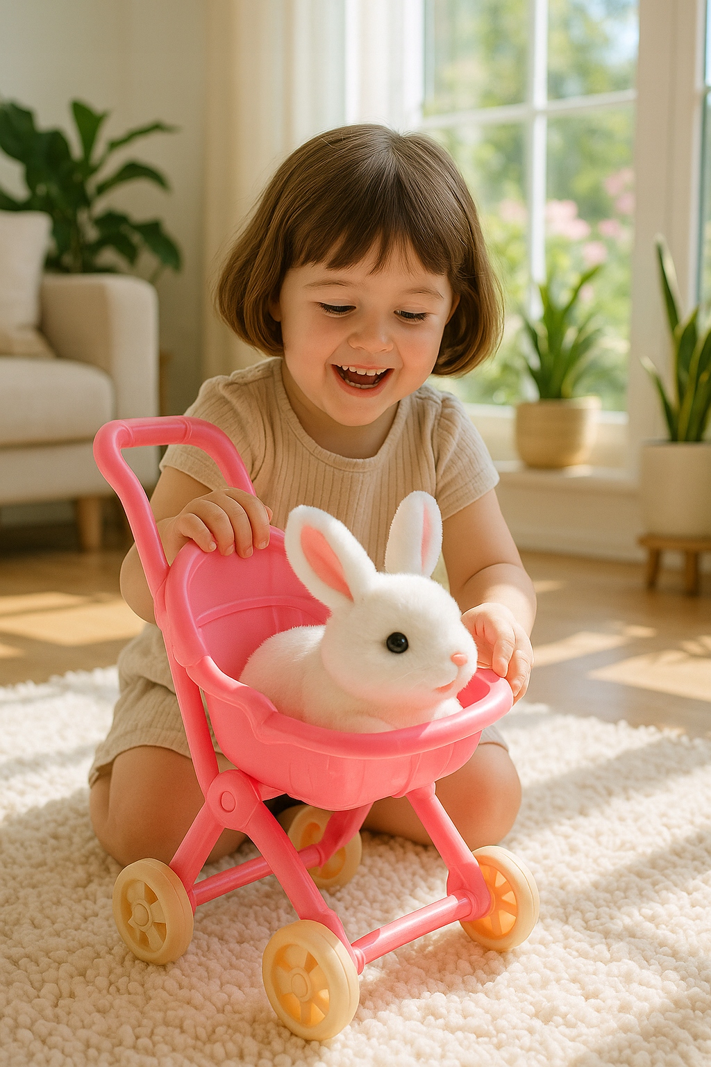 ⭐ ИНТЕРАКТИВНОЕ ЖИВОТНОЕ КРОЛИК ДВИГАЕТ УШИ ЗАЙЧИК + КОЛЯСКА-РОЗА LK013A⭐