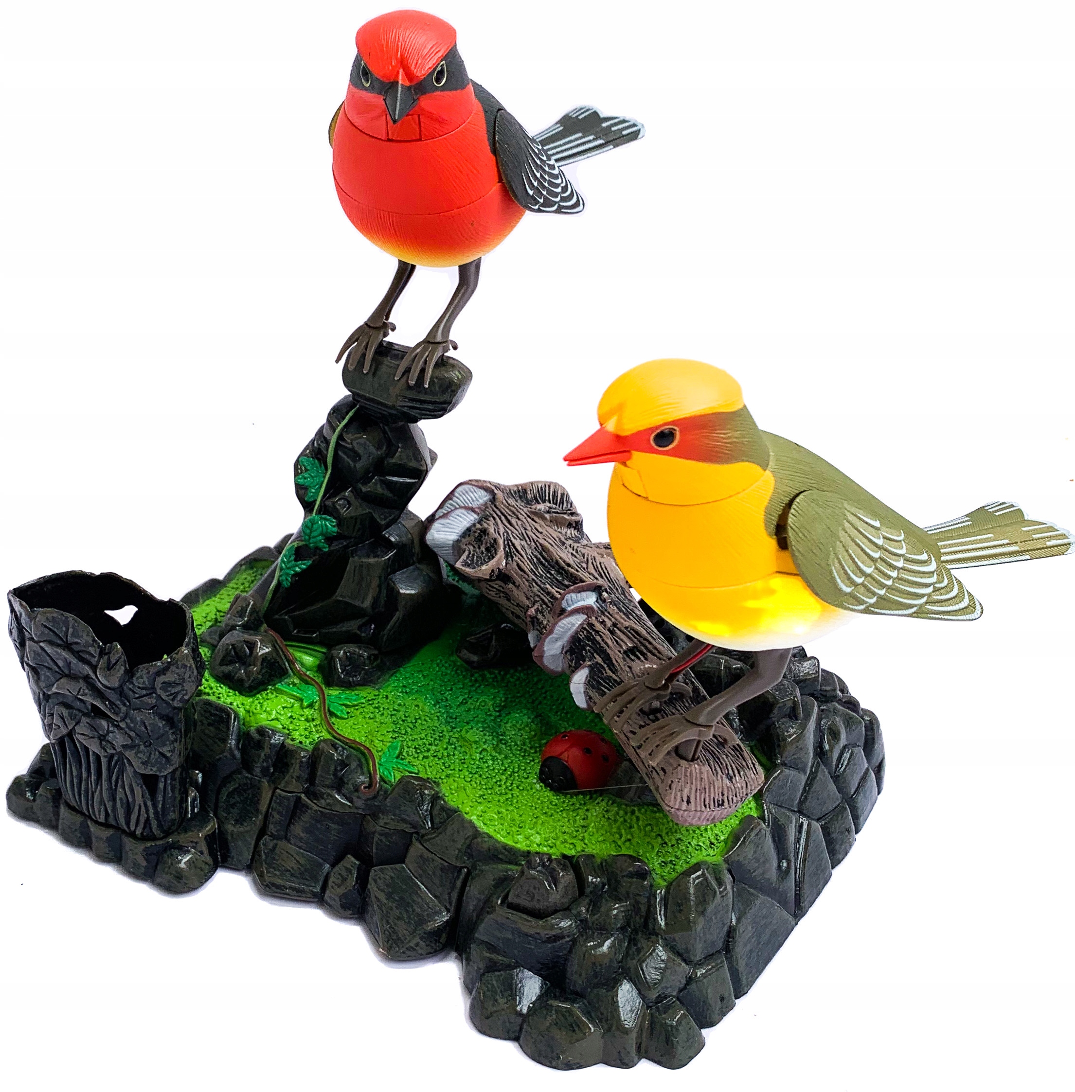 Они реагируют на прикосновения и звуки. Просто хлопните в ладоши или прикоснитесь, и комната наполнится прекрасным пением птиц. Птицы раскачиваются вперед и назад, двигая клювами.