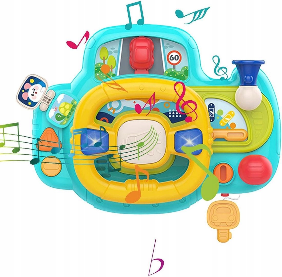 [ОБРАЗОВАТЕЛЬНОЕ РАЗВЛЕЧЕНИЕ] Игрушка оснащена прокручиваемым экраном, который показывает движение по дороге. Это отличный способ познакомить маленького ребенка с использованием транспортного средства и принципами передвижения. [ФУНКЦИОНАЛЬНОСТЬ И РАЗВЛЕЧЕНИЕ] Руль, который придает дополнительный смысл благодаря реалистичному виду и забавным функциям. Нажатие музыкальной кнопки запускает мелодию, а повторное нажатие вызывает воспроизведение музыки.