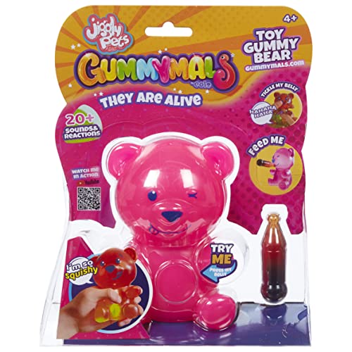 ЖЕВЫЕ ЖИВЫЕ! Jiggly Pets Gummymal’s — это набор очаровательных интерактивных мармеладных мишек с более чем 20 звуками и реакциями. Эти милые мармеладки станут вашими новыми лучшими друзьями, пока вы играете и заботитесь о них. Взаимодействуйте со своим Gummymal различными увлекательными и игровыми способами.