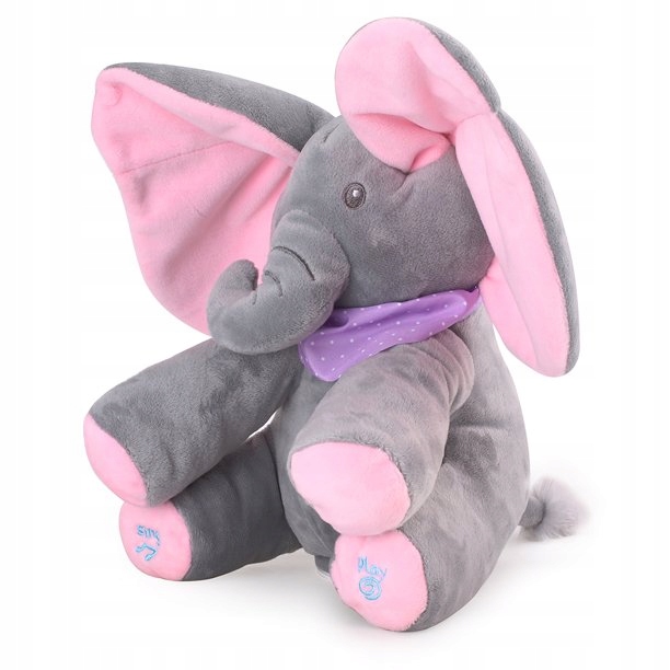 После нажатия кнопки ИГРАТЬ слоненок начинает говорить и играет с ребенком в прятки, закрывая глаза ушами. Звук и движение привлекают внимание ребенка.
