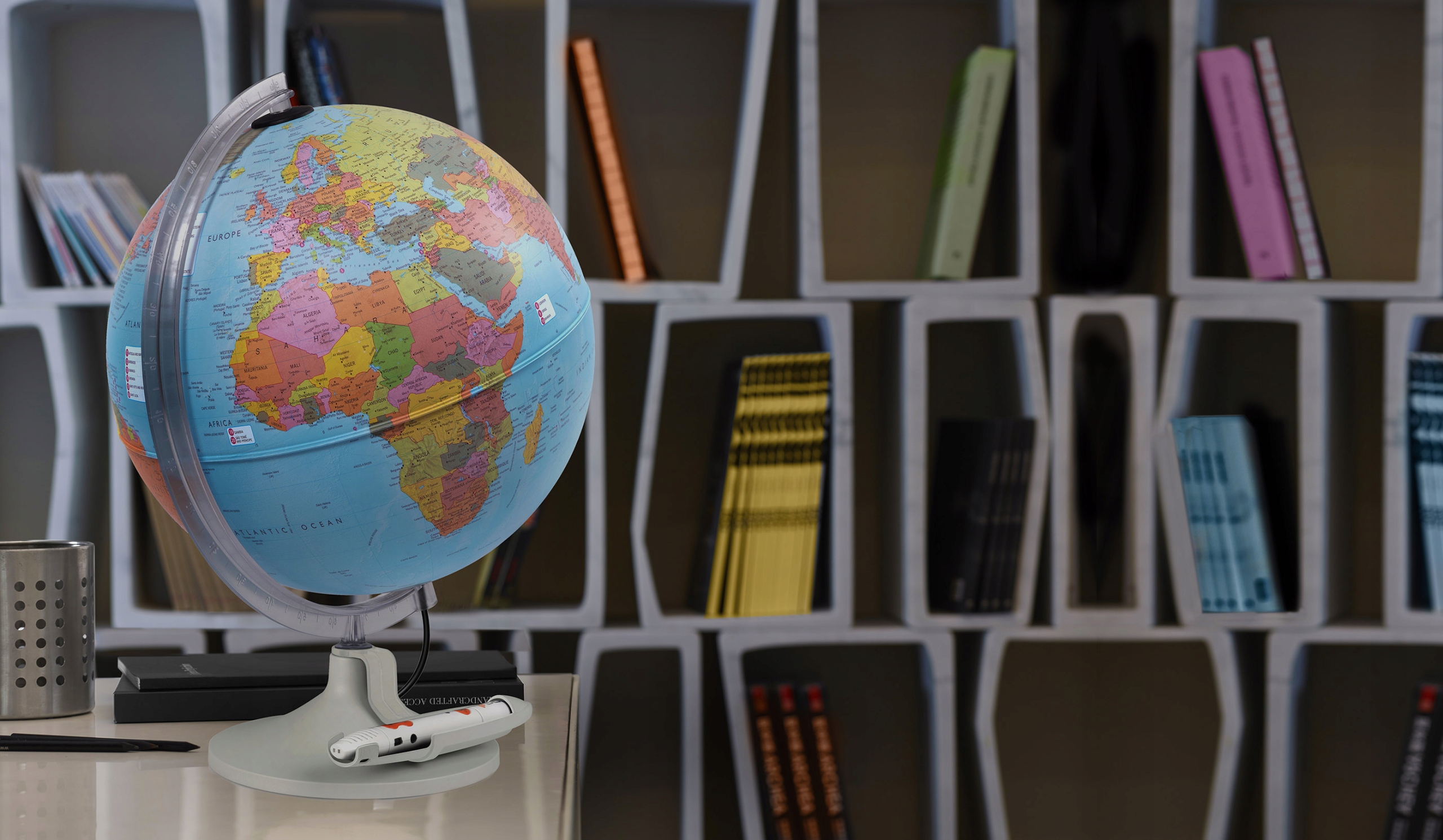 - Глобус с подсветкой для детей от 6 лет с политической картографией, диаметром 30 см и шаром, вращающимся вокруг собственной оси.
